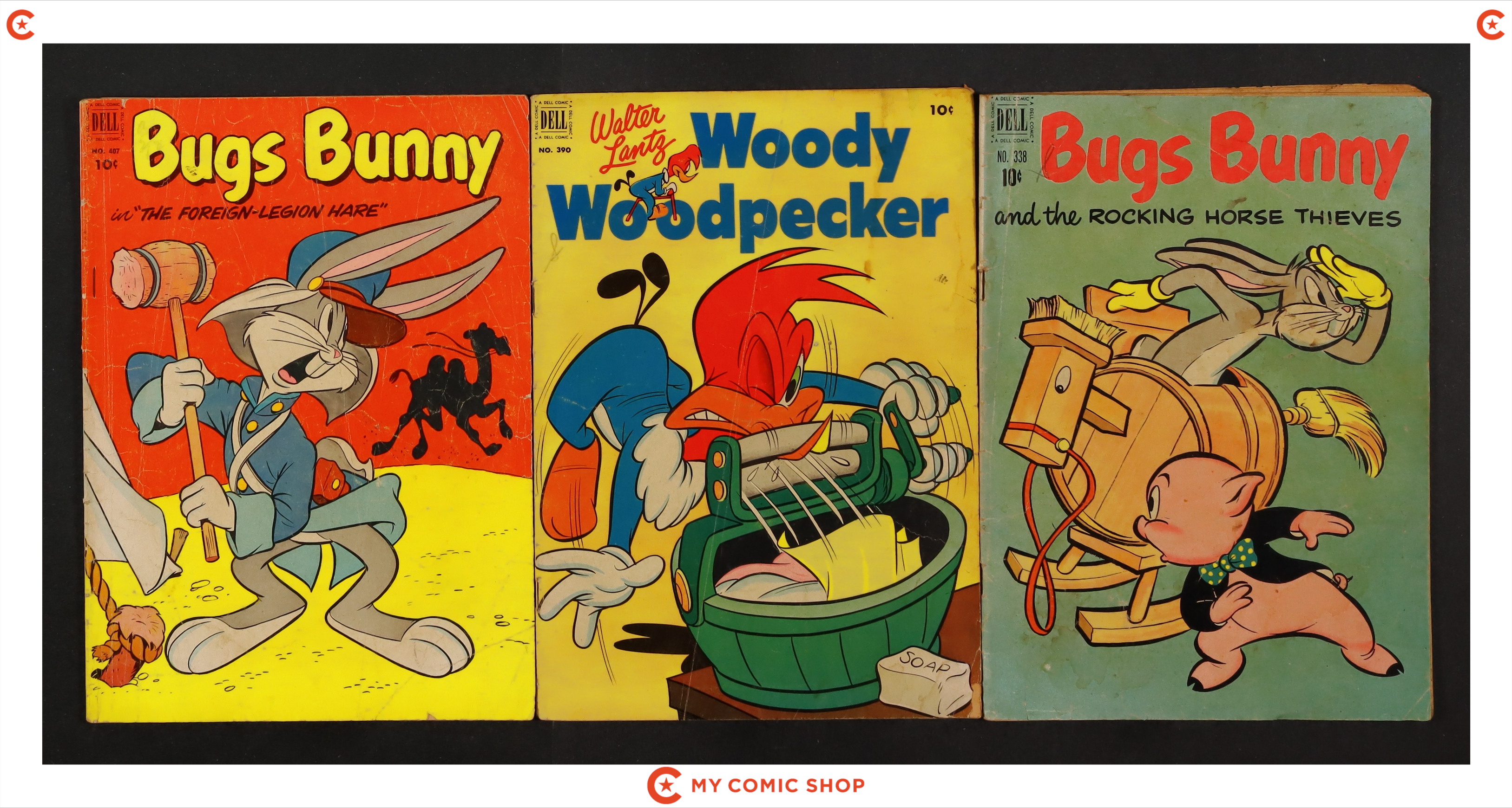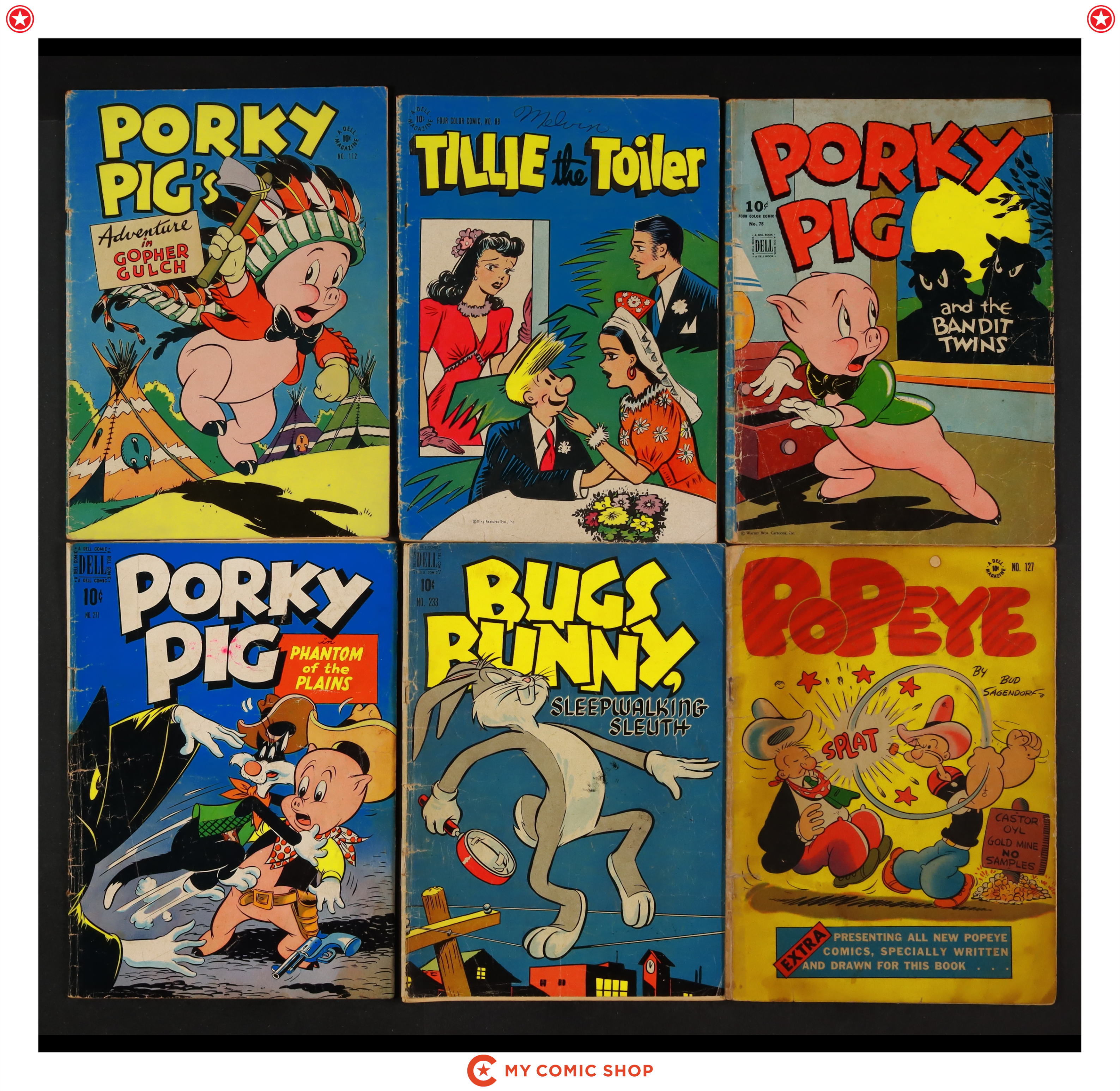 Issues 78, 89, 112, 127, 233, 271, 338, 390, 407 of Four Color (1942-1962 Dell 2nd Series). Most will grade in the FR to GD range.