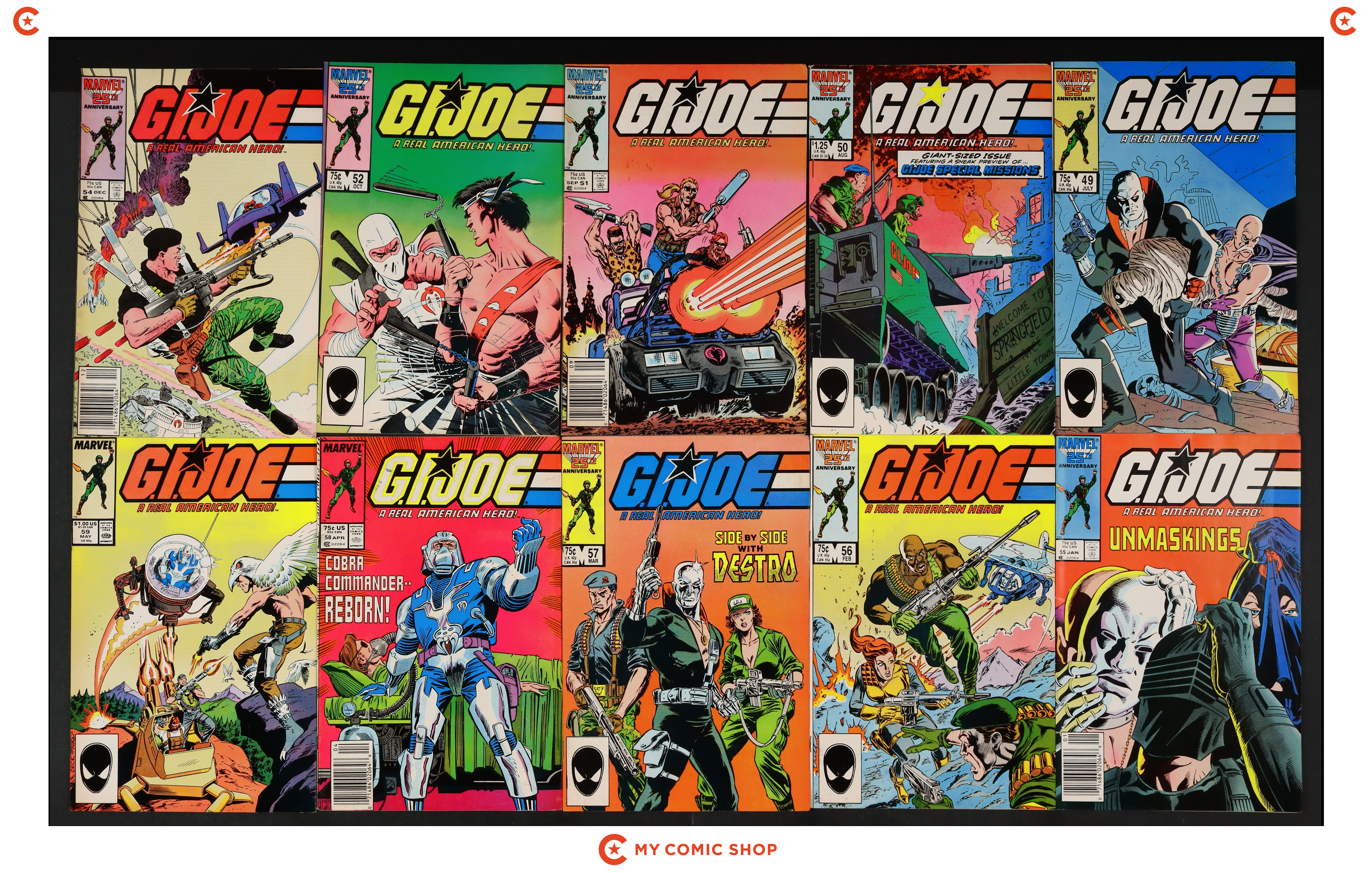 Issues 52N, 53N, 54, 55, 56D, 57, 58, 59D, 60, 61 of GI Joe A Real American Hero (1982 Marvel). Most will grade in the GD/VG to FN range.