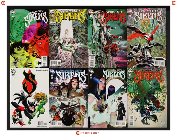 Issues 11-16, 18, and 19 of Gotham City Sirens (2009). Most will grade in the NM range with a couple grading VF.