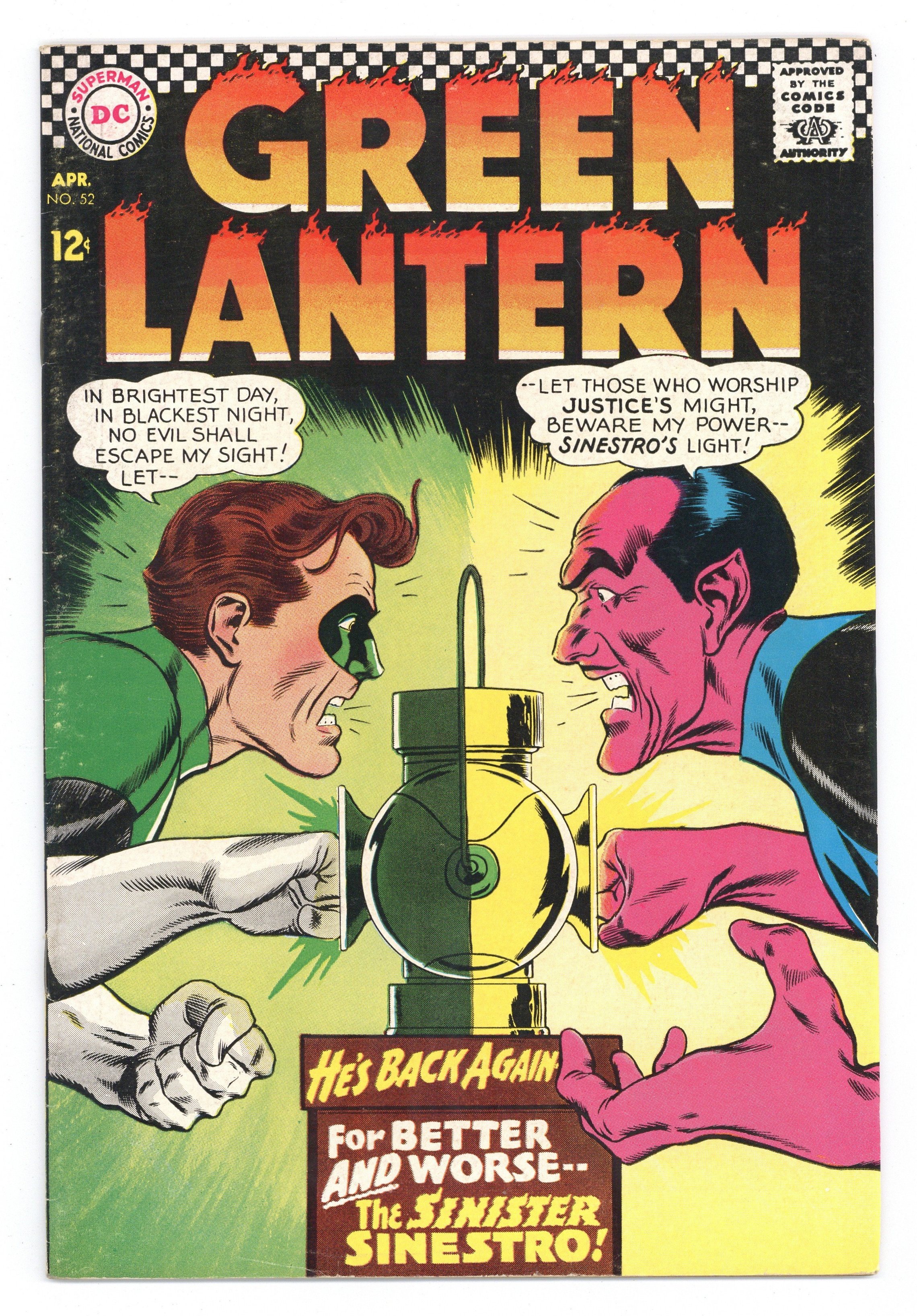 Ends Jan 13 9:44 PM CST Bid History 11 bids Current Bid $120 Your Secret Max Bid If you'd like to bid, please log in or register. Origin and first appearance of Sinestro. Cover pencils by Gil Kane, inks by Joe Giella. The Day 100,000 People Vanished!, script by John Broome, pencils by Gil Kane, inks by Joe Giella; In an attempt to capture Green Lantern, Sinestro captures 100,000 people from the town of Valdale; The Guardians warn Green Lantern of Sinestro's plan and Green Lantern travels to Qward to rescue the citizens of Valdale. Wings of Destiny!, script by John Broome, pencils by Gil Kane, inks by Joe Giella; Green Lantern accidentally changes Pieface into a bird while Green Lantern is having a dream. Later Green Lantern has to meet Terga at the airport and stop a hijacking. 36 pgs. $0.10. Cover price $0.10.