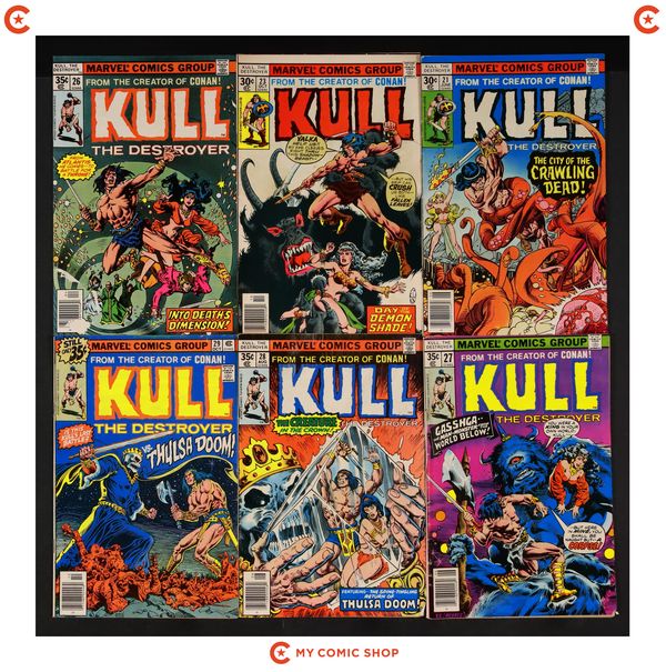 Issues 2, 5, 16, 21, 23-26, 28, 29 of Kull the Conqueror (1971 1st Series). Most will grade in the VG to FN range with issues 5, and 26 grading GD.