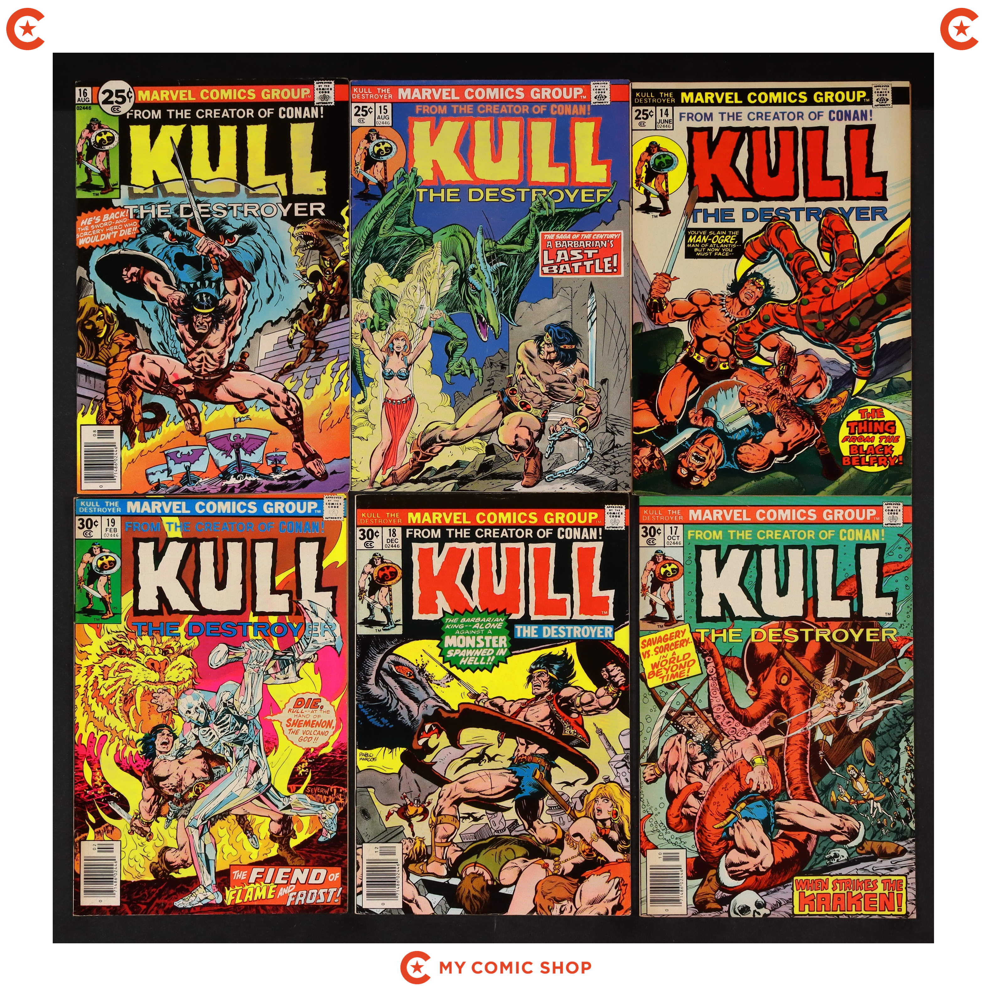 Issues 14-19, 21, 23, 26-29 of Kull the Conqueror (1971 1st Series). Most will grade in the GD to VG range with a few grading FN.