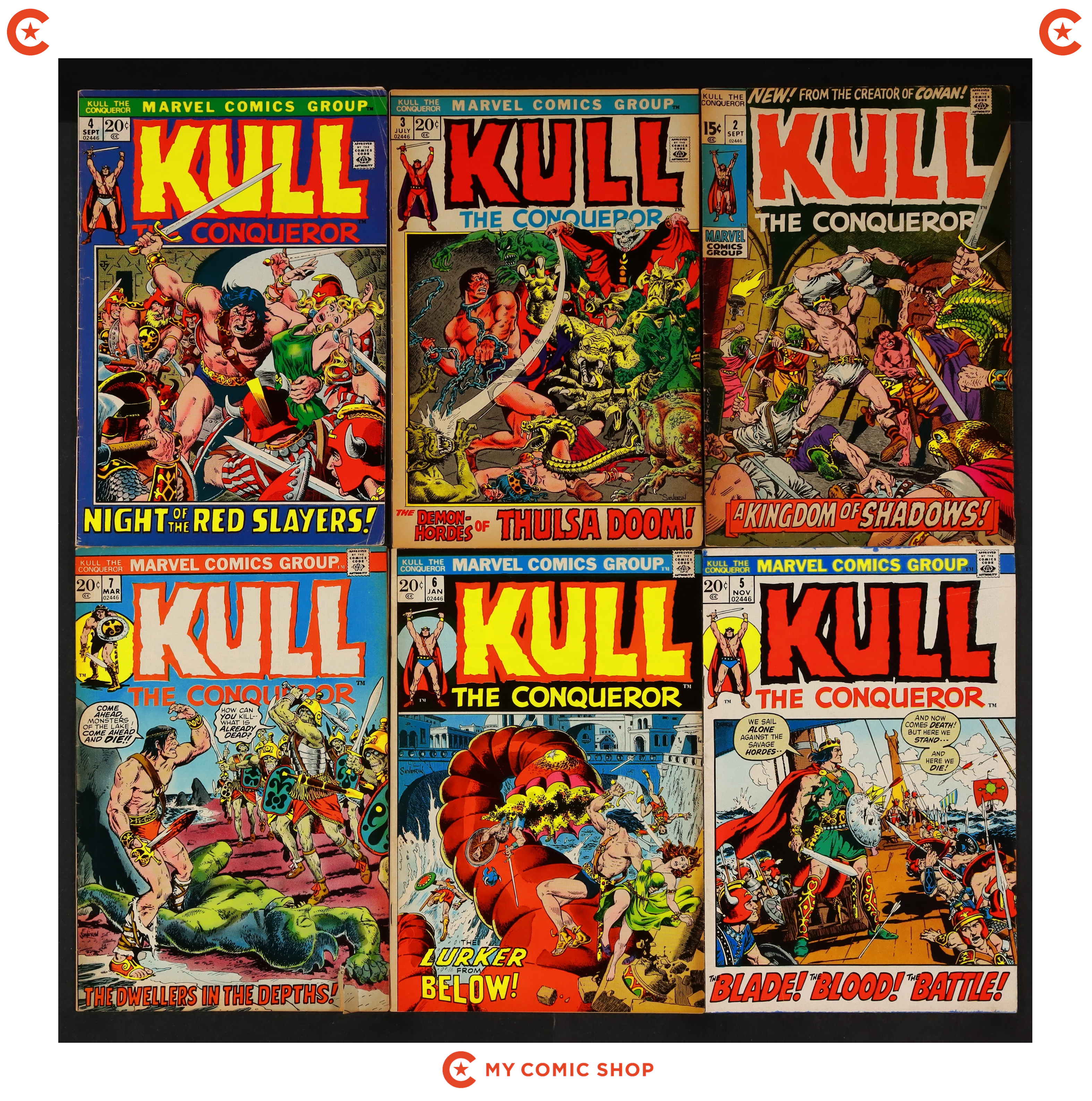 Issues 2, 3, 4MJ, 5-10 of Kull the Conqueror (1971 1st Series). Most will grade in the GD to VG range.
