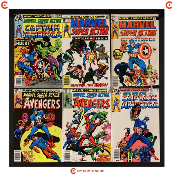 Issues 1, 6, 12-15, 17, 36, 37 of Marvel Super Action (1977). Most will grade in the VG to FN range.
