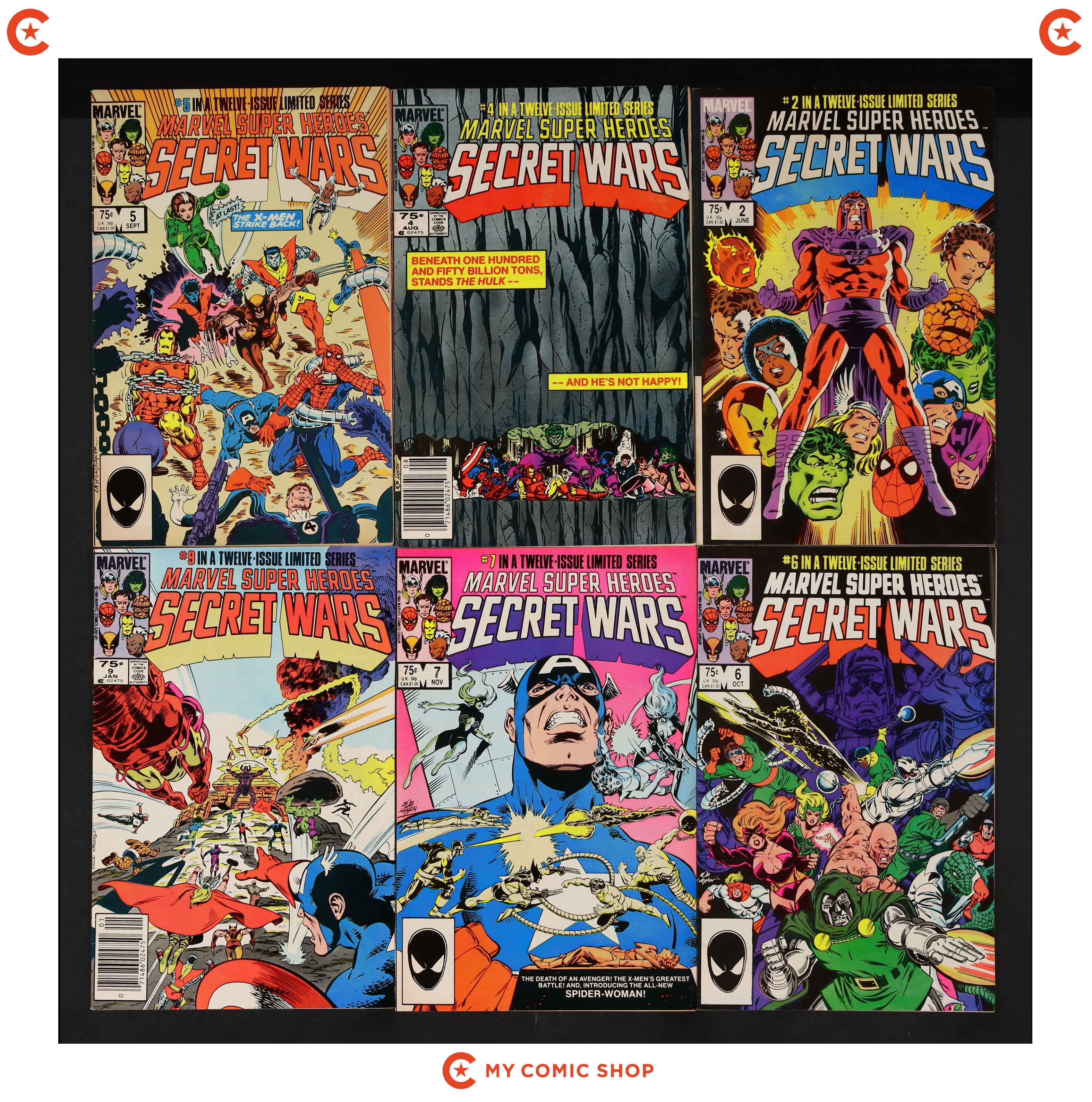 Issues 2N, 4D, 5N, 6N, 7D, 9D-12D of Marvel Super Heroes Secret Wars (1984). Mos will grade in the FN- to FN/VF range.
