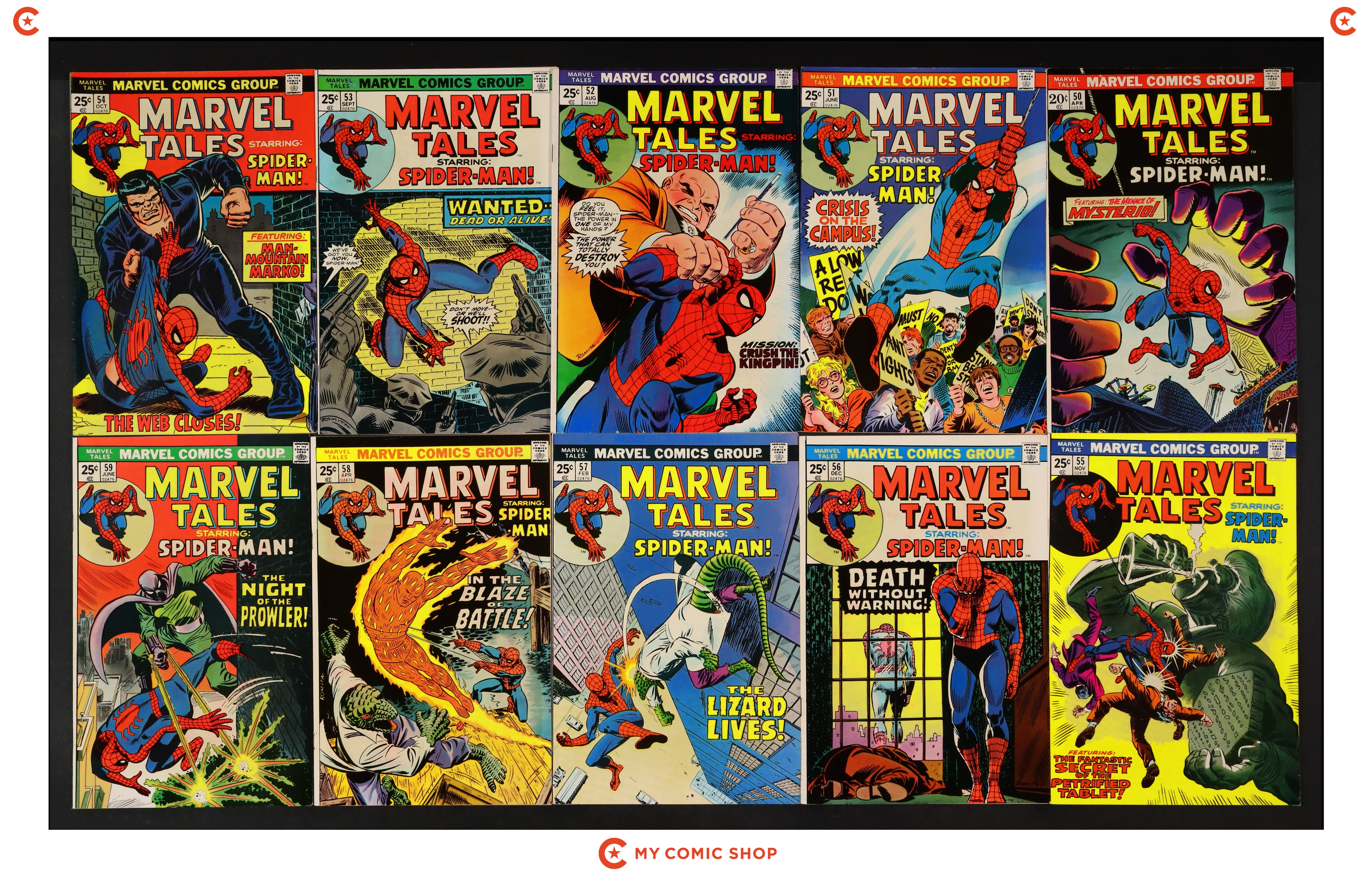 Issues 50-59 of Marvel Tales (1964 Marvel). Most will grade in the FN to FN/VF range.