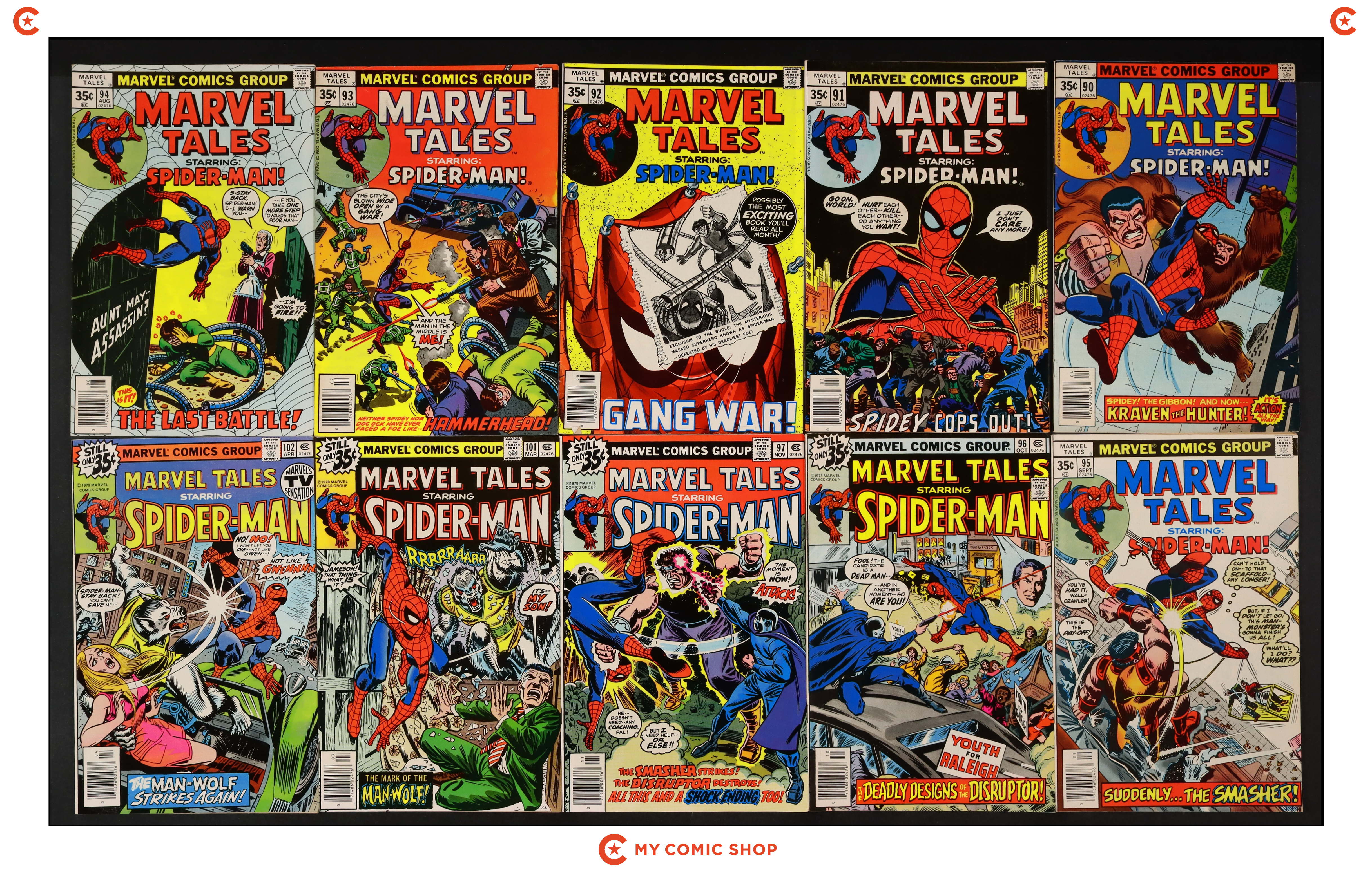 Issues 90-97, 101, 102 of Marvel Tales (1964 Marvel). Most will grade in the VG/FN to FN/VF range.