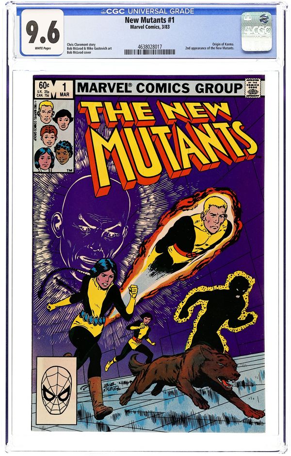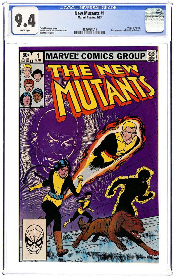 Ends Jan 15 8:54 PM CST Bid History 5 bids Current Bid $61 Your Secret Max Bid If you'd like to bid, please log in or register. Direct Edition. Regular series begins (first appearance is in Marvel Graphic Novel 4). Cover art by Bob McLeod. Initiation!, script by Chris Claremont, pencils by Bob McLeod, inks by Mike Gustovich; The New Mutants get acclimated to their new home, new talents, new friends, and new teachers, unaware that they are being watched; Moira learns that Professor X has a son; and Psyche is attacked in the Danger Room by an unknown assailant; Origin of Karma. Second appearance of the New Mutants (after Marvel Graphic Novel #4). Cover price $0.60.