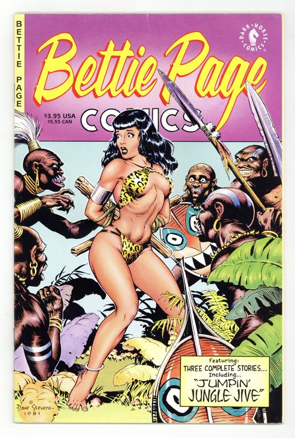 Starts Jan 19 Cover by Dave Stevens. Step right up, folks and pay attention! This is it! At long last, Bettie Page has given her blessing to this, her very first officially licensed comic book. And the man who's put it all together in this stunningly illustrated package: Dave Stevens, of course (need you ask?). Featuring three complete stories, Bettie's exploits take her from camera club misadventures to B-movie making, to meeting little green men in Central Park! FC. Cover price $3.95.