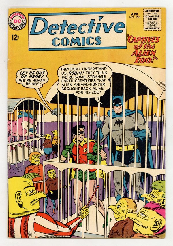 Starts Jan 19 Cover art by Sheldon Moldoff. The Golden Rule public service announcement starring Bob Hope, script by Jack Schiff, art by Mort Drucker. "Captives of the Alien Zoo!" starring Batman and Robin, script by Dave Wood, pencils by Sheldon Moldoff, inks by Charles Paris; Batman and Robin are mistaken for two-legged animals by alien hunters, are captured and are placed on display in an alien zoo; The Dynamic Duo manage to escape the alien zoo and they are able to locate the authorities of the alien planet, who inform them that the hunters that captured them are in fact criminals who use exotic animals for their crimes; Batman and Robin help the authorities of this world to capture the criminals and later they are sent back to Earth on a special spaceship. Casey the Cop humor page by Henry Boltinoff. Four-Legged Sleuth article. "The Death of John Jones, Detective" starring John Jones Manhunter from Mars, script by Jack Miller, art by Joe Certa; A criminal steals the idol head of Diabolu unaware that once it's opened it will release an ancient evil at each full moon; Jones is apparently killed by the first monster. Manhunter vows to hunt down each monster until he finally finds the idol head. 36 pgs., full color. Cover price $0.12.