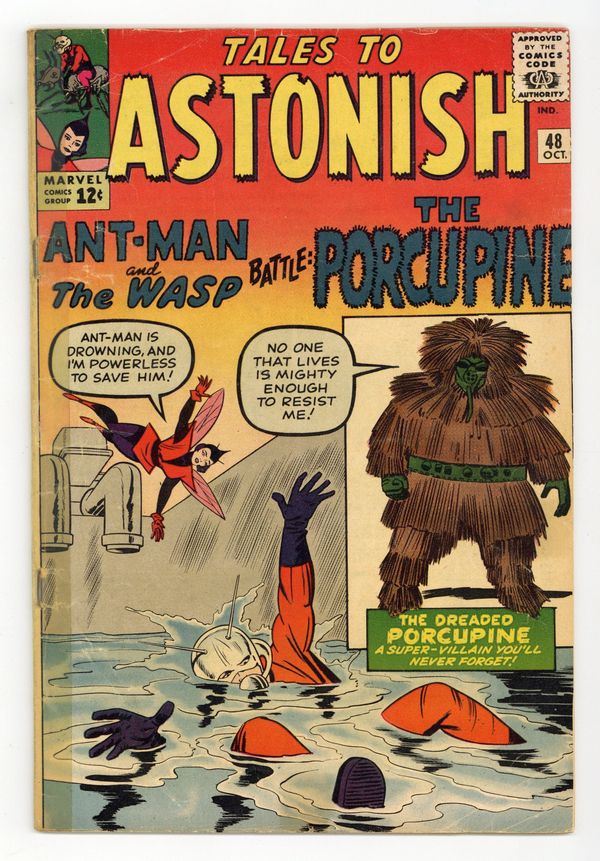 Starts Jan 19 Cover by Jack Kirby and Sol Brodsky. Ant-Man and the Wasp Defy the Porcupine!, script by Stan Lee and Ernie Hart [as H. E. Huntley], art by Don Heck; The Porcupine decides to rob a burglar-proof bank designed by Henry Pym. The Inventor text story. Grayson's Gorilla!, script by Stan Lee and Larry Lieber, art by Larry Lieber and Matt Fox; A scientist tries to give himself the strength of a gorilla for his own ends. The Little Green Man!, script by Stan Lee, art by Steve Ditko; An unscrupulous pilot tricks an alien into refitting his plane, but throws the creature out instead of rewarding it. 36 pgs., full color. $0.12. Cover price $0.12.