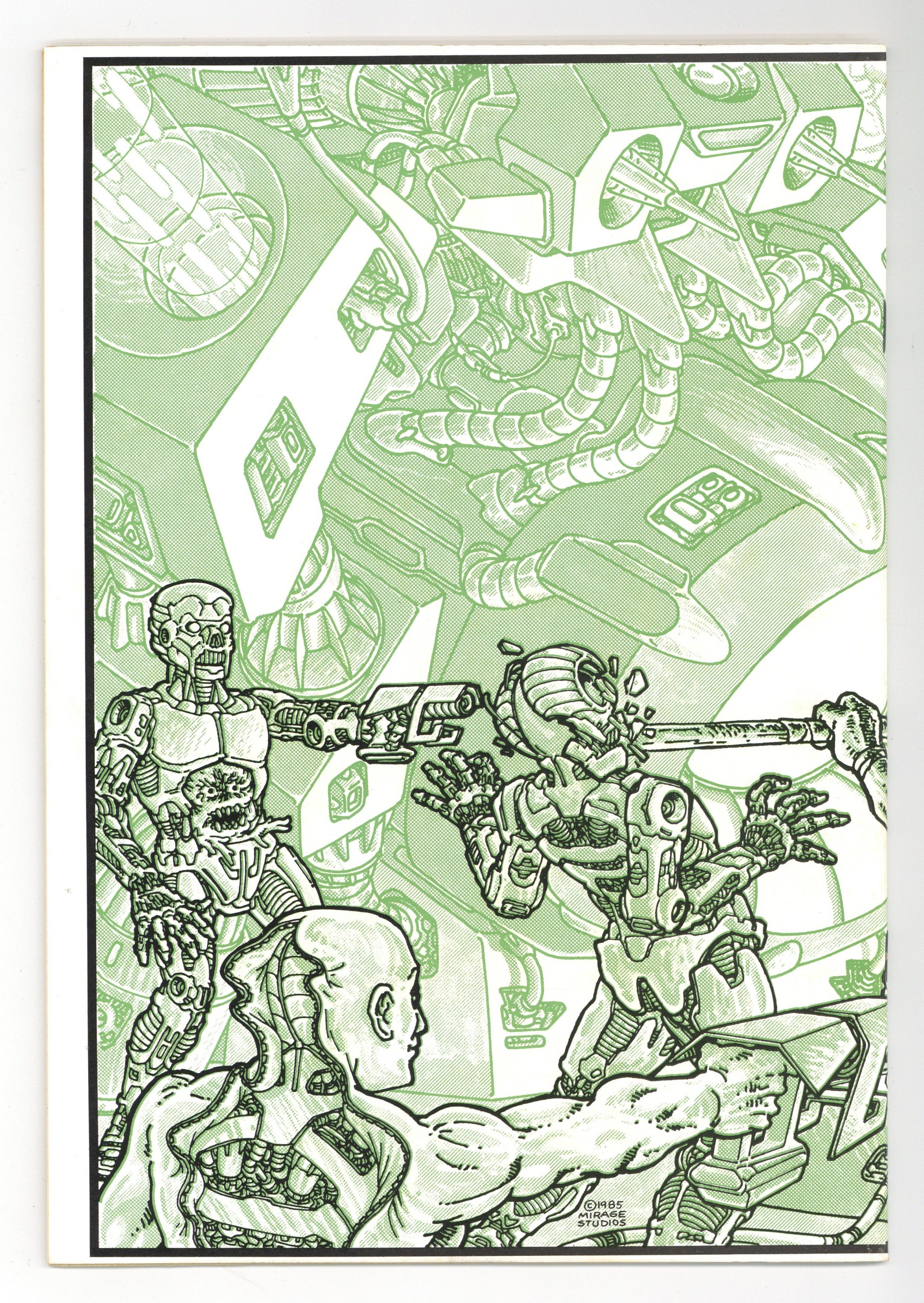 Starts Apr 4 First printing. According to Overstreet, this issue has one additional printing, which can be identified as such on the inside cover. The original series that introduced the Turtles to the world. Searching for Splinter, the Turtles encounter the alien androids known as the Utroms. Story, art and cover by Kevin Eastman & Peter Laird. Final issue in magazine format; series continues in comic format as Teenage Mutant Ninja Turtles (1985). Black and white; 40 pages. Cover price $1.50.