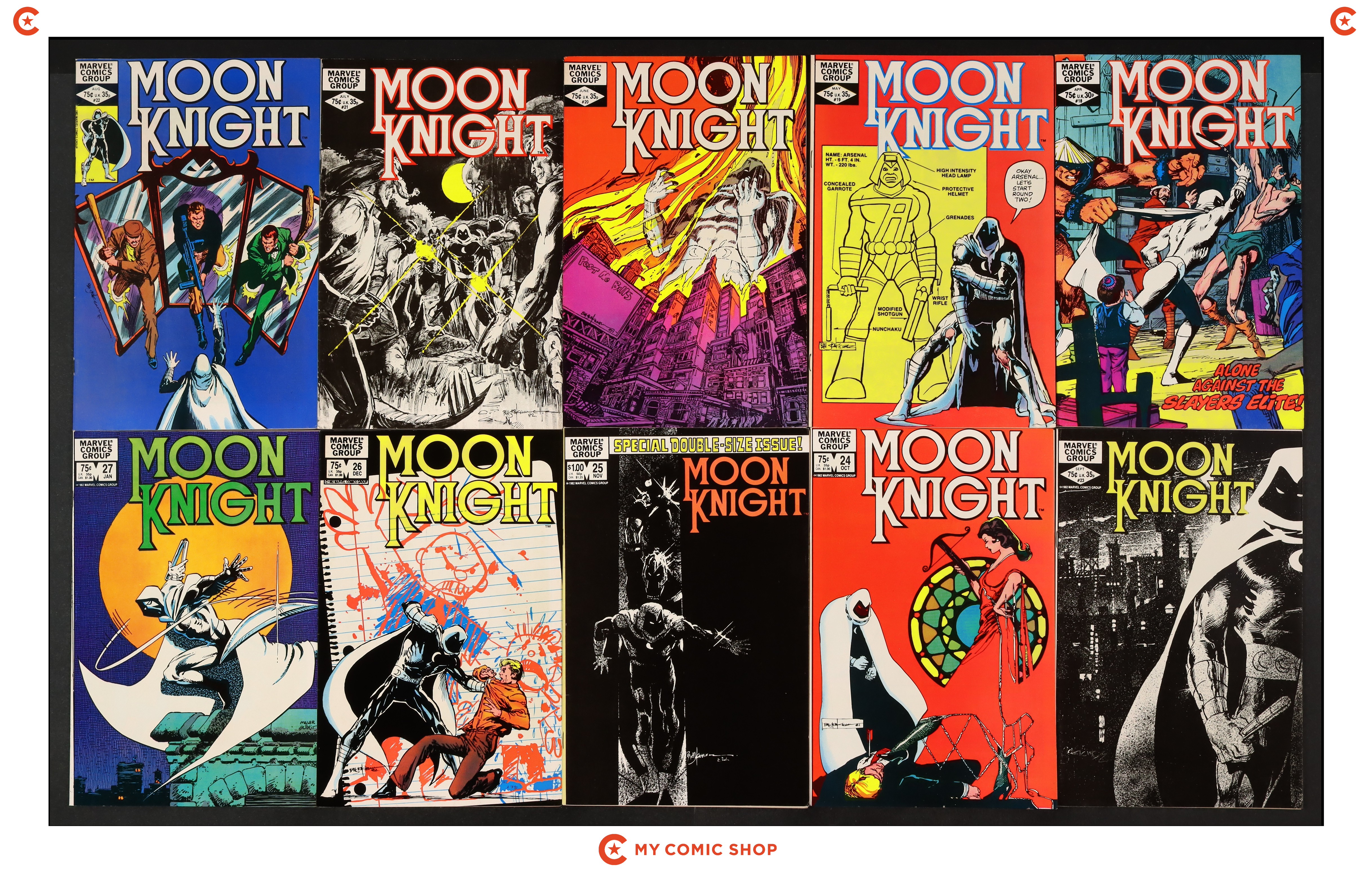 Issues 18-27 of Moon Knight (1980 1st Series). Most will grade in the FN to VF range.
