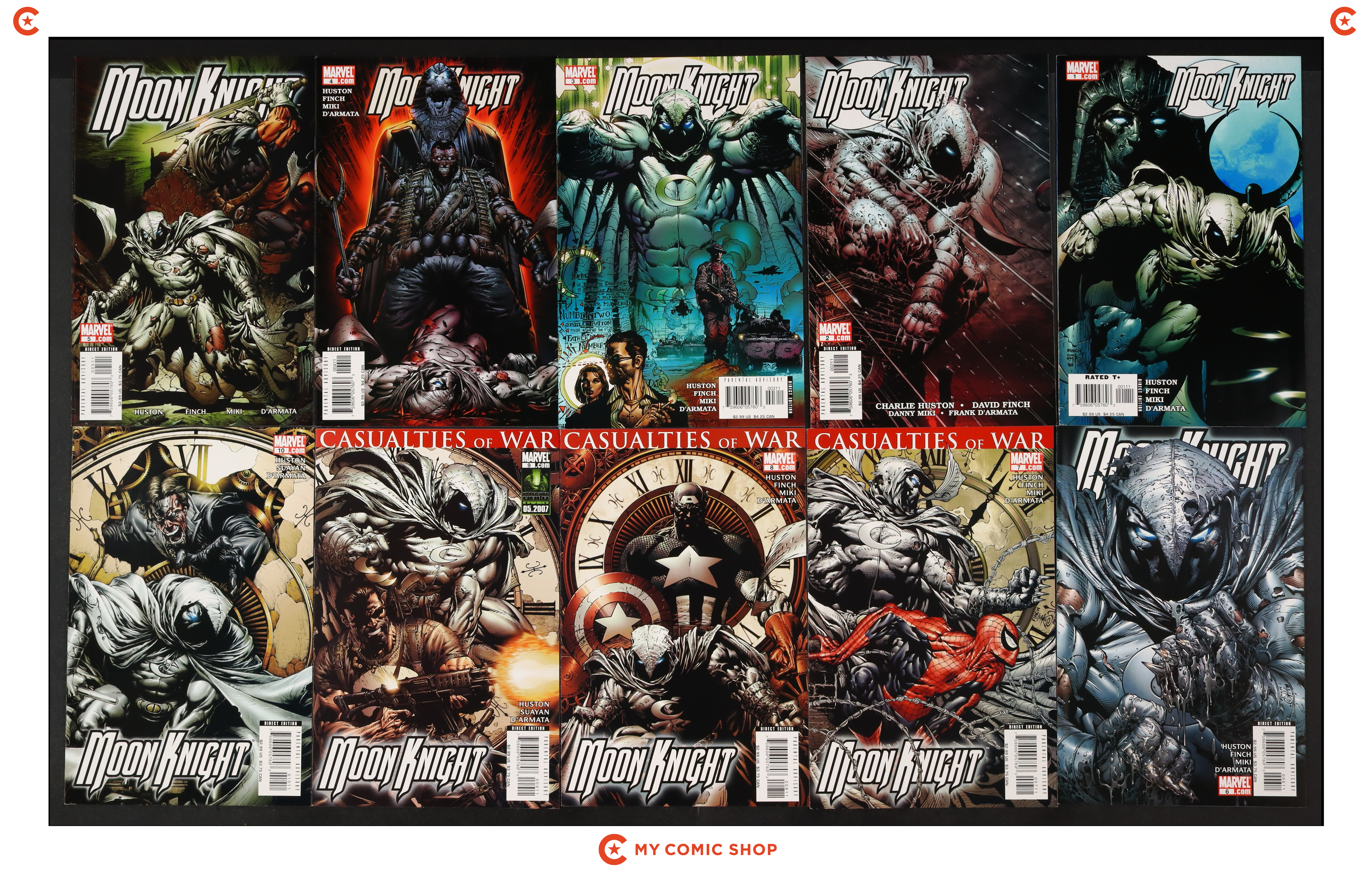 Issues 1A, 2-5, 6A, and 7-10 of Moon Knight (2006 3rd Series). Most will grade in the VF to FN+ range.