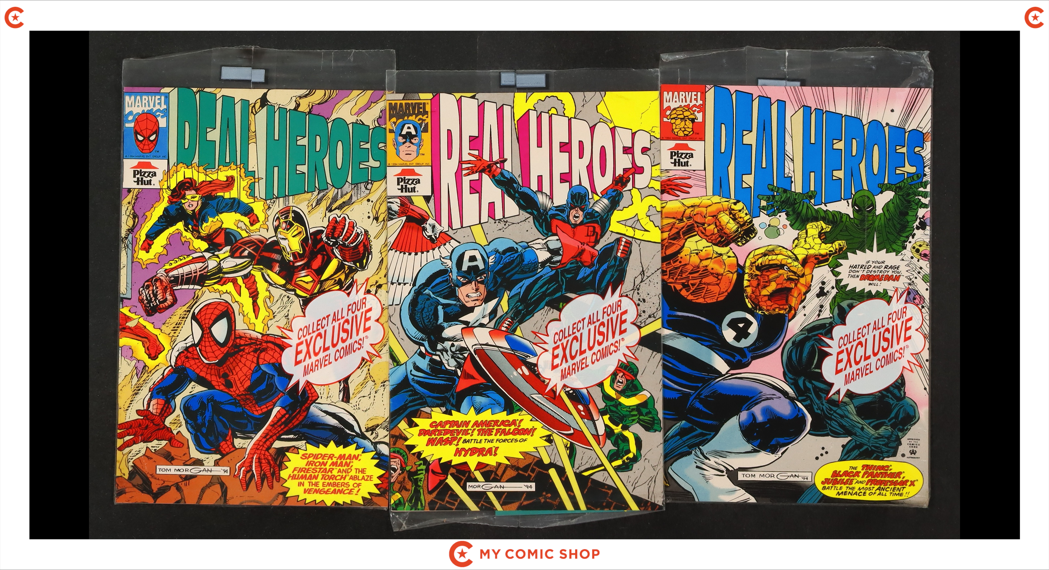 Issues 1, 3, and 4 of Real Heroes (1994 Pizza Hut Promos). Most will grade in the VF to FN range.