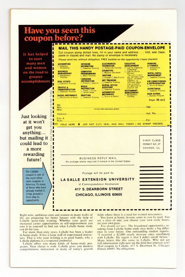 Starts Feb 2 "For A Few Fists More!" Guest-starring Spider-Man and Iron Fist. Script by Gerry Conway. Pencils by Jim Mooney. Inks by Vince Colletta. Cover by Gil Kane and Frank Giacoia. Iron Fist and Spider-Man battle Drom the Backwards Man! If Spider-Man and the Living Weapon can reverse time, they will straighten out the backwards man! (Notes: This issue features the first meeting between Iron Fist and Spider-Man, and was reprinted in Marvel Treasury Edition #18. The letters page includes a letter from comics writer Ralph Macchio.) This issue 36 pages. Cover price $0.25.