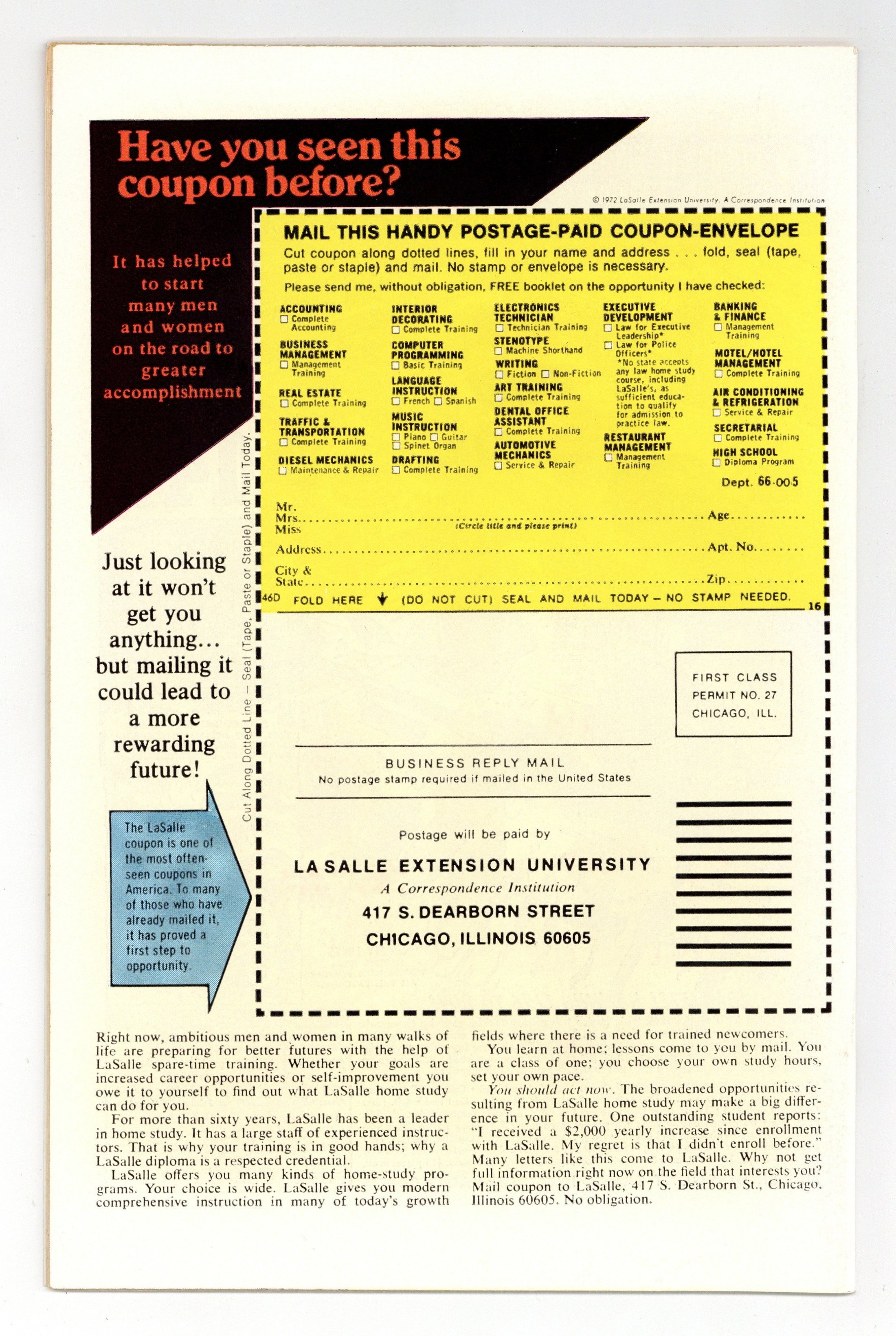 Starts Jan 3 "The Power to Purge!" Part 1 of 2. Guest-starring Spider-Man and the Human Torch. Script by Gerry Conway. Pencils by Ross Andru. Inks by Frank Giacoia. Cover by Gil Kane and Vince Colletta. The web-slinger and the Human Torch team up for the third issue in a row to take on Spider-Man's newest adversary! At the end of Amazing Spider-Man 102, Morbius the Living Vampire survived his plunge into the river. And now he's on the hunt again! Near the Empire State University campus, the torch and the wall-crawler catch up to Morbius! But under a full moon, no one is beating the Living Vampire. Stalemate is the best possible outcome against the bloodthirsty Morbius. Cameo appearances by Martine Bancroft, Mr. Fantastic, Invisible Girl, and the Thing. (Notes: This issue is the third appearance of Morbius. Parts of the story are reprinted in Spectacular Spider-Man (1st series) #6. The letters page includes a letter from comics writer Bob Rozakis.) 36 pages. Cover price $0.20.