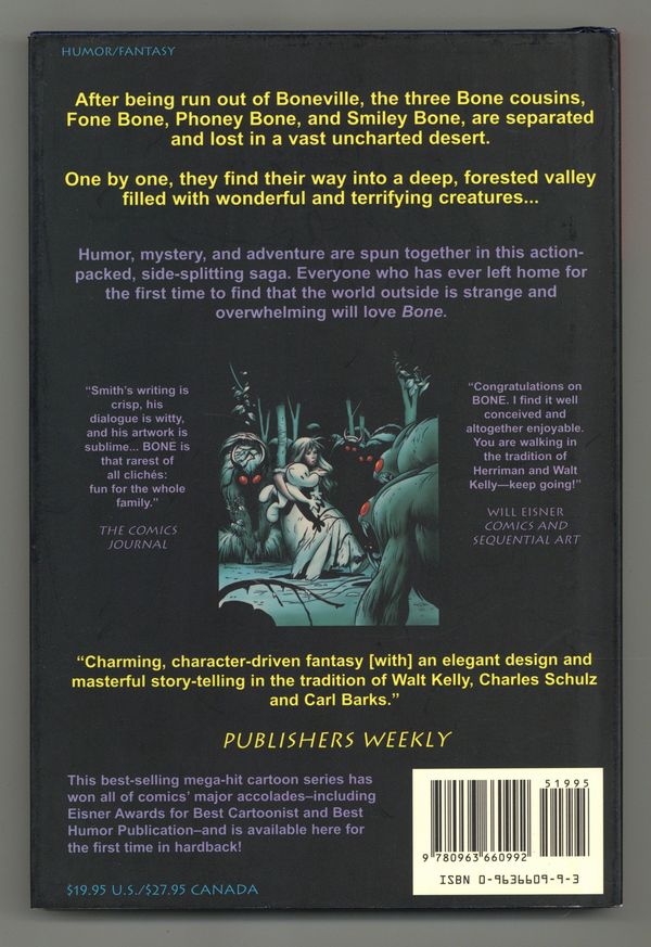 Published Jul 1995 by Cartoon Books.Bone HC (1995-2004 Cartoon Books) B&W Edition 1-1ST FN/VF 7.0