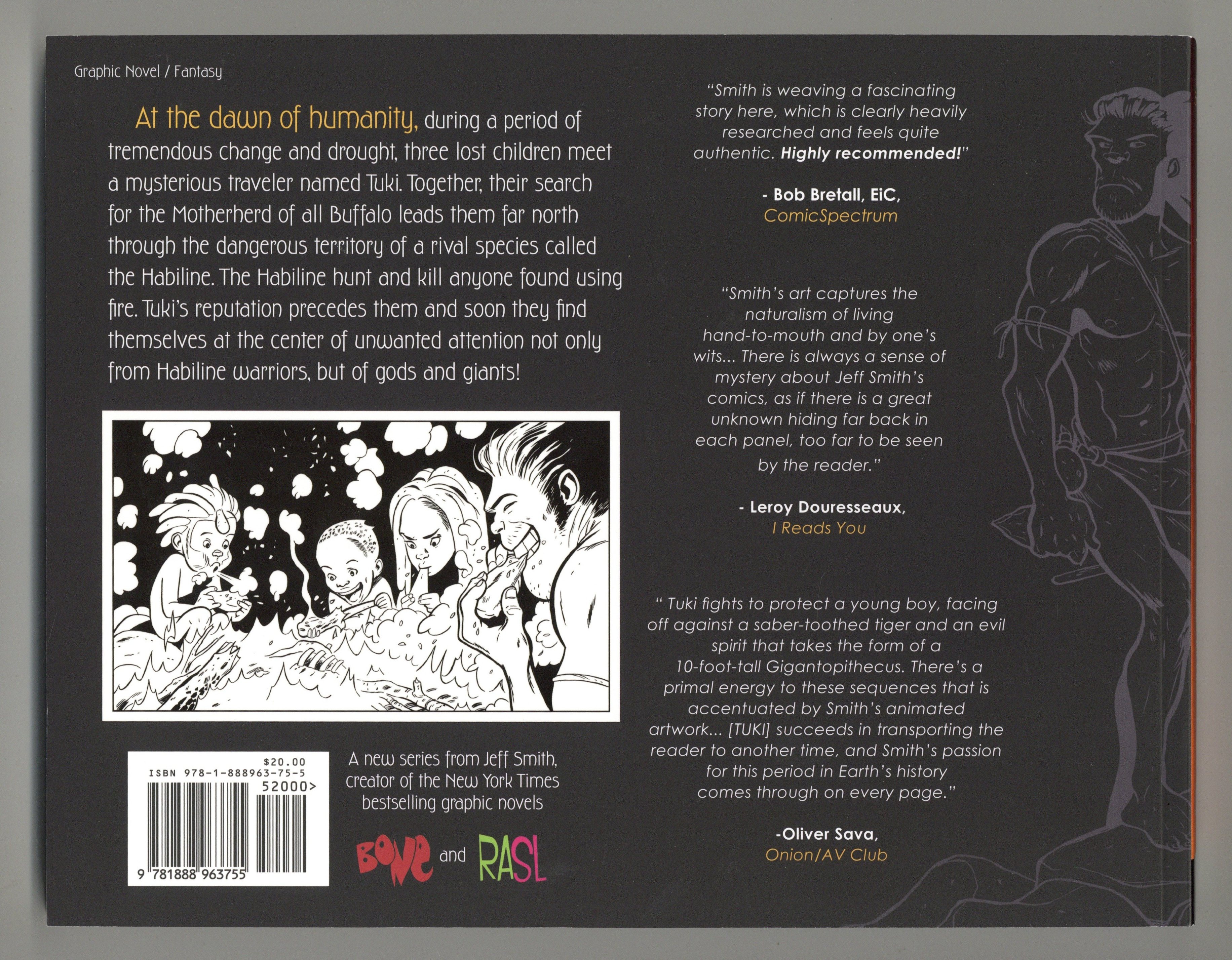Together, their search for the Motherherd of all Buffalo leads them far north through the dangerous territory of a rival species called the Habiline. The Habiline hunt and kill anyone found using fire. Tuki's reputation precedes them and soon they find themselves at the center of unwanted attention not only from Habiline warriors, but of tribal spirits and giants!