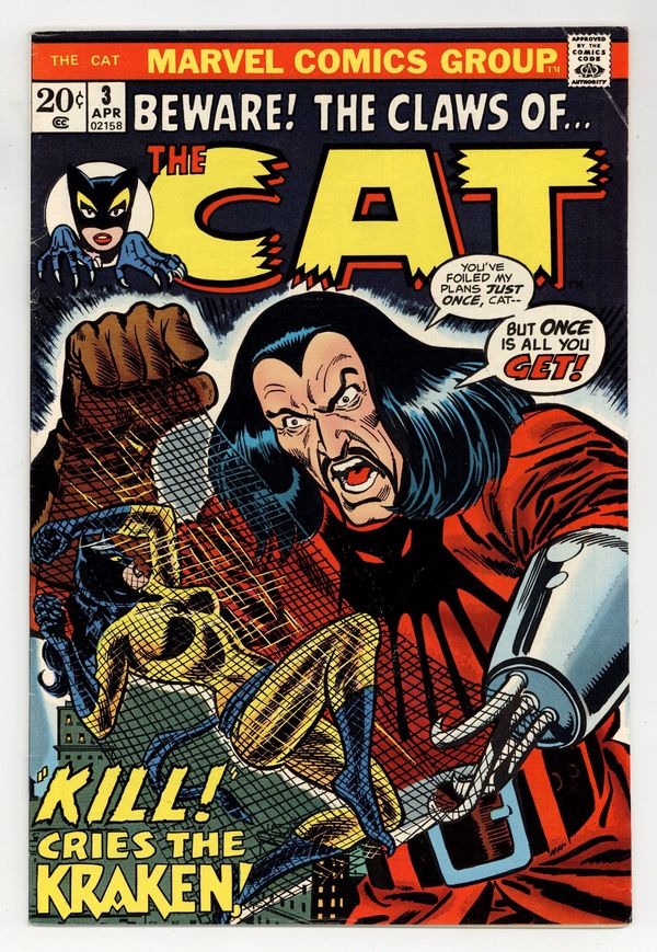 Starts Mar 23 1st appearance and origin of Greer Grant Nelson (later Tigra). Beware the Claws of...the Cat! - Written by Linda Fite (script and co-plot) and Roy Thomas (co-plot). Art and Cover by Marie Severin and Wally Wood. She stalks by night! Introducing Marvel's newest action bombshell! How did a beautiful girl gain the uncanny powers of a killer beast? Don't miss this amazing origin issue! 32 pages, full color. Cover price $0.20.