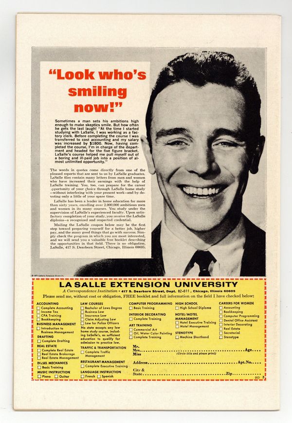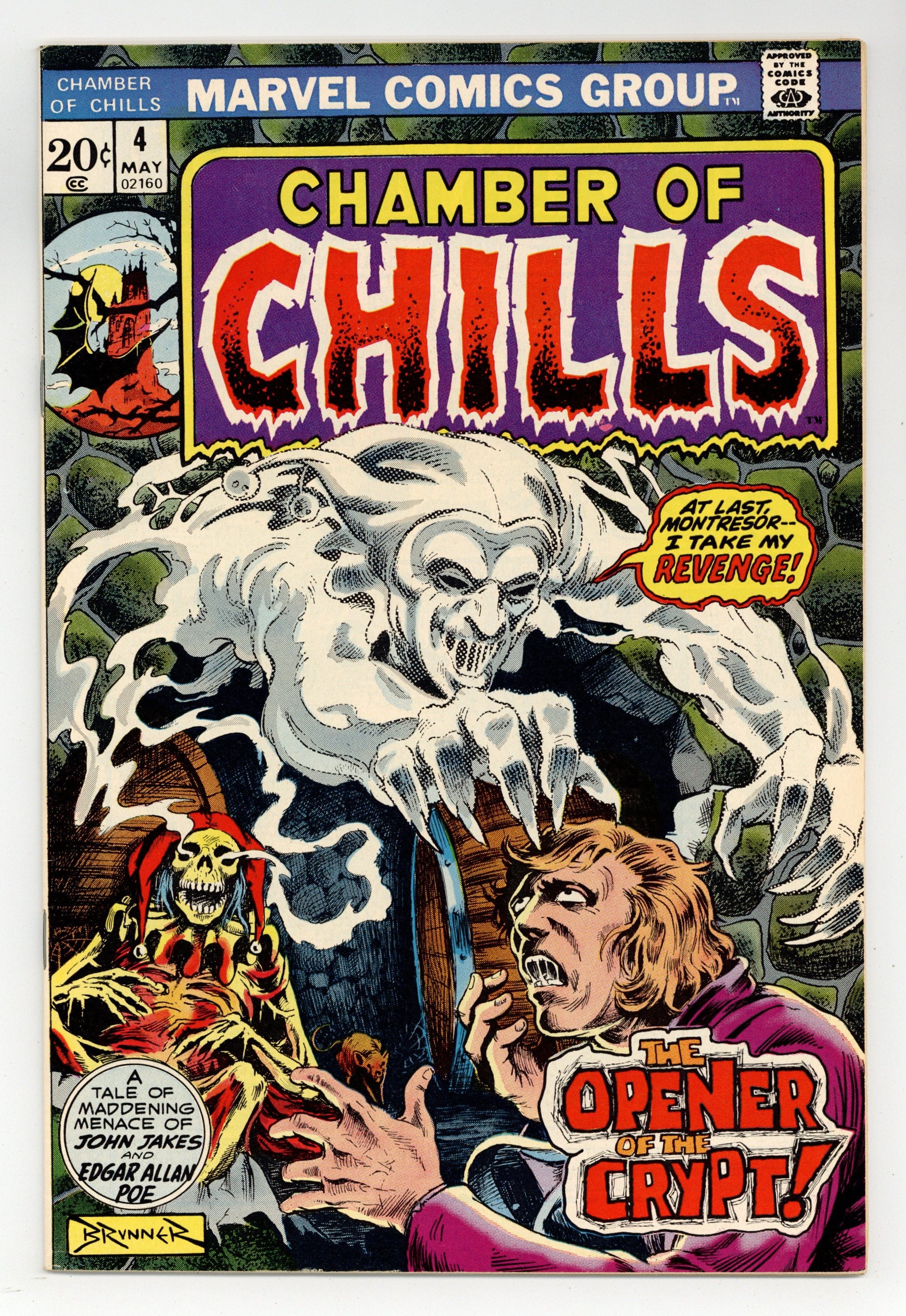Starts Mar 23 Cover art by Frank Brunner. All new stories: The Opener of the Crypt!, script by John Jakes, art by Frank Brunner; A man who is fascinated by a short story of Edgar Allan Poe finds that he has a part to play in its continuation; adapting the story by John Jakes (sequel to "The Cask of Amontillado" by Edgar Allan Poe). Pawn of the Devoured, script by Steve Skeates, pencils by Jay Scott Pike, inks by Frank Chiaramonte; A shipwrecked castaway meets a horrible fate on an island inhabited only by ants. The Demon From Beyond!, script by Gardner Fox, pencils by Howard Chaykin, inks by Joe Sinnott; Adventurer Murdoch Adams saves a woman from being sacrificed in a pagan ritual, and defeats the demon Ludi that required the sacrifice. 36 pgs., full color. $0.20. Cover price $0.20.