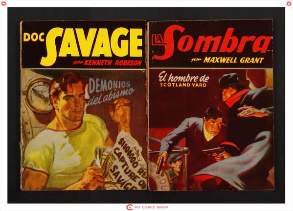 Issues 357 of Doc Savage (Editorial Molino) Spanish Edition Digest; and 358 of La Sombra (Spanish c.1937 Editorial Molino) Digest. Most will grade in the VG to GD range.