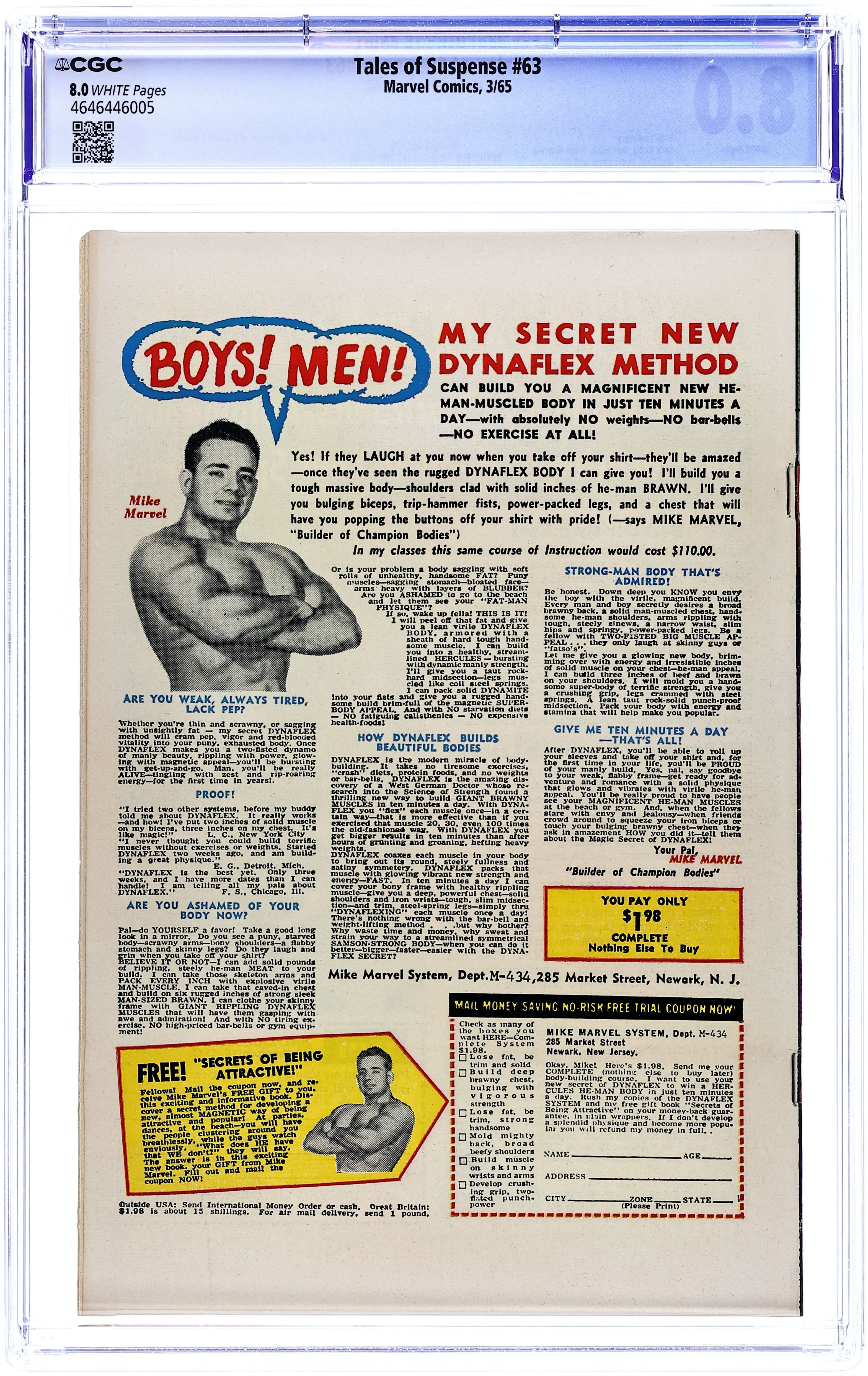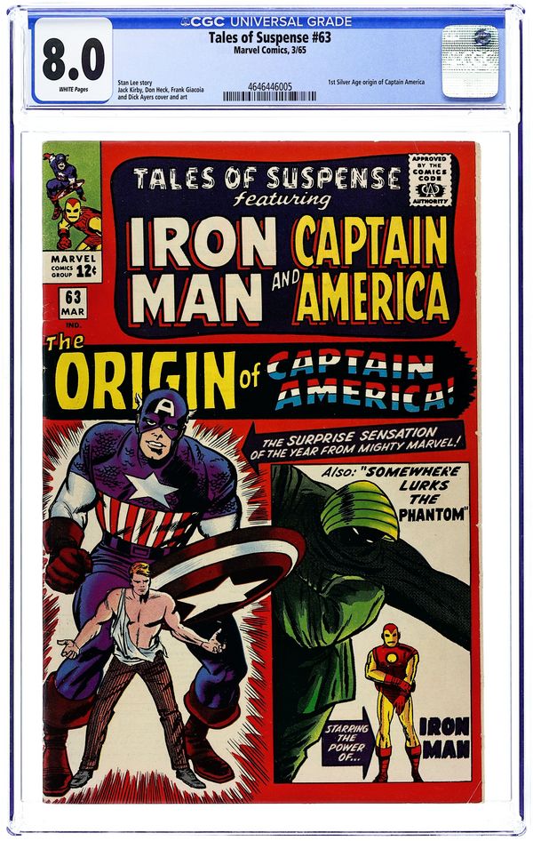 Tags: Marvel Legacy Numbering: Captain America (part 63), Marvel Legacy Numbering: Tales of Suspense (part 63), Captain America, Iron ManTales of Suspense (1959) 63 CGC 8.0