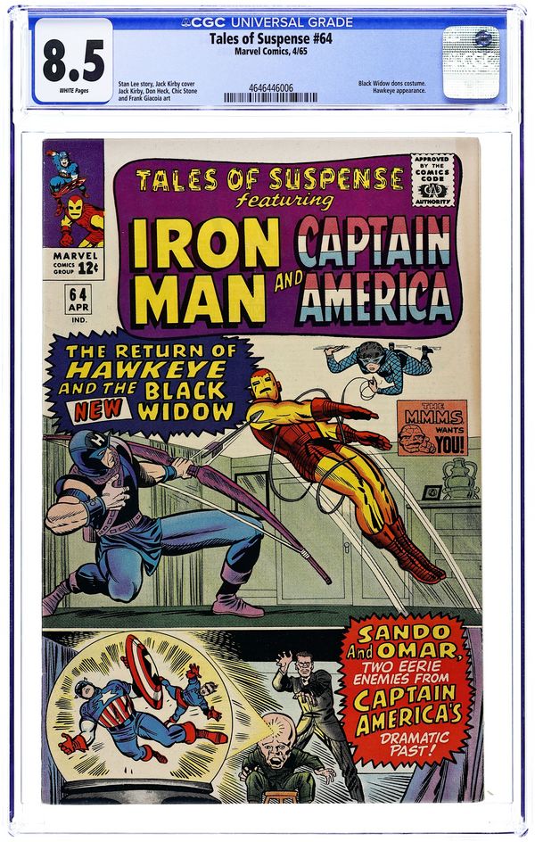 Tags: Marvel Legacy Numbering: Captain America (part 64), Marvel Legacy Numbering: Tales of Suspense (part 64), Captain America, Iron ManTales of Suspense (1959) 64 CGC 8.5