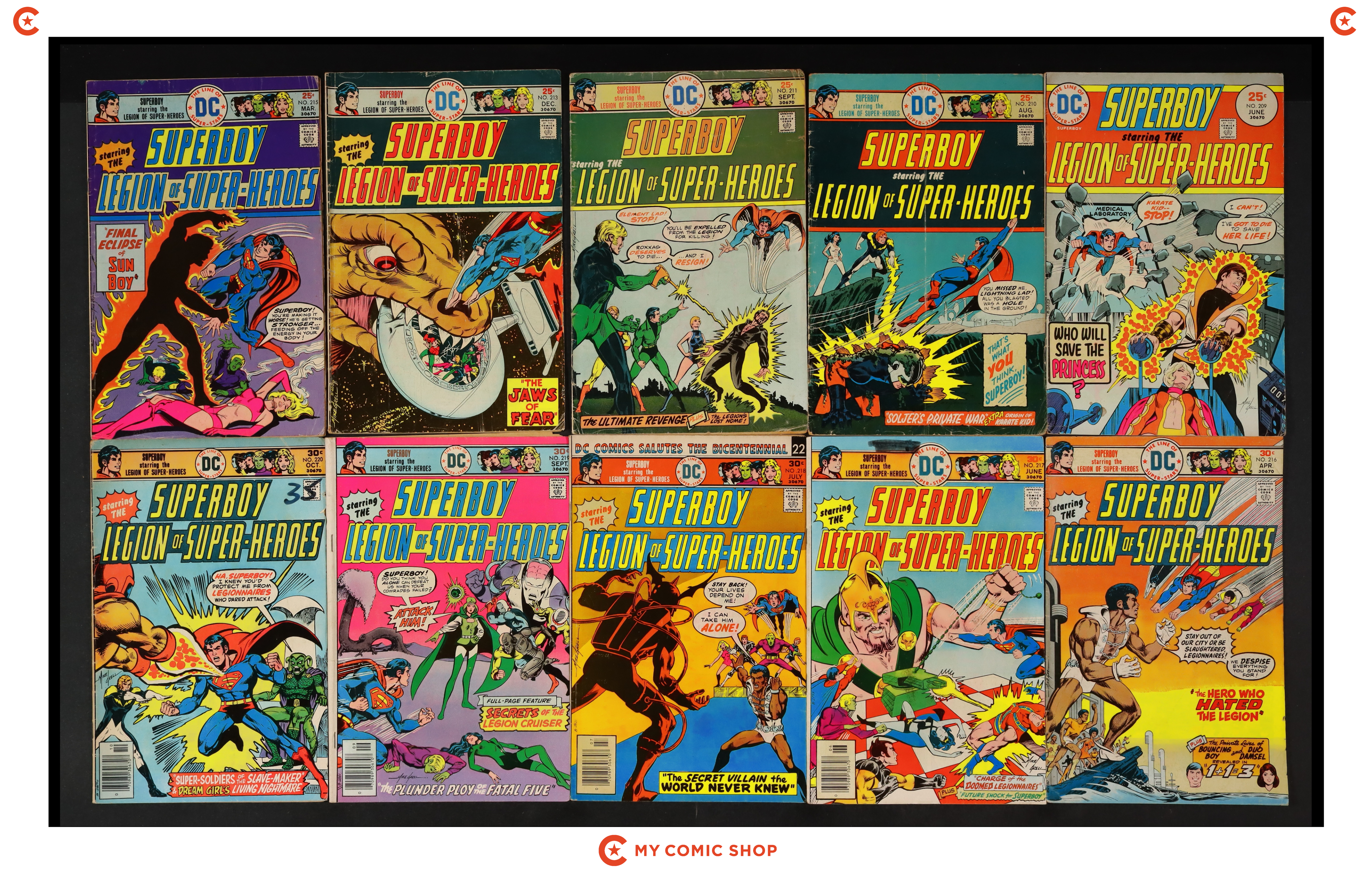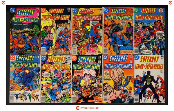 Issues 234-243 of Superboy (1949-1979 1st Series DC). Most will grade in the VG range.