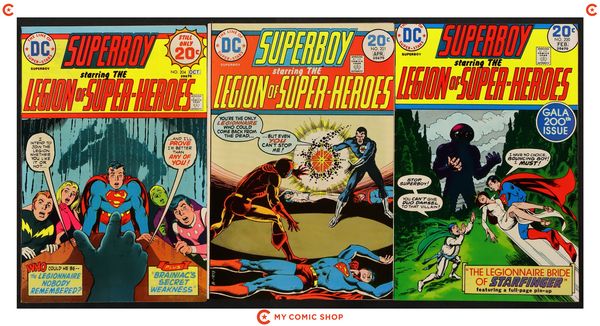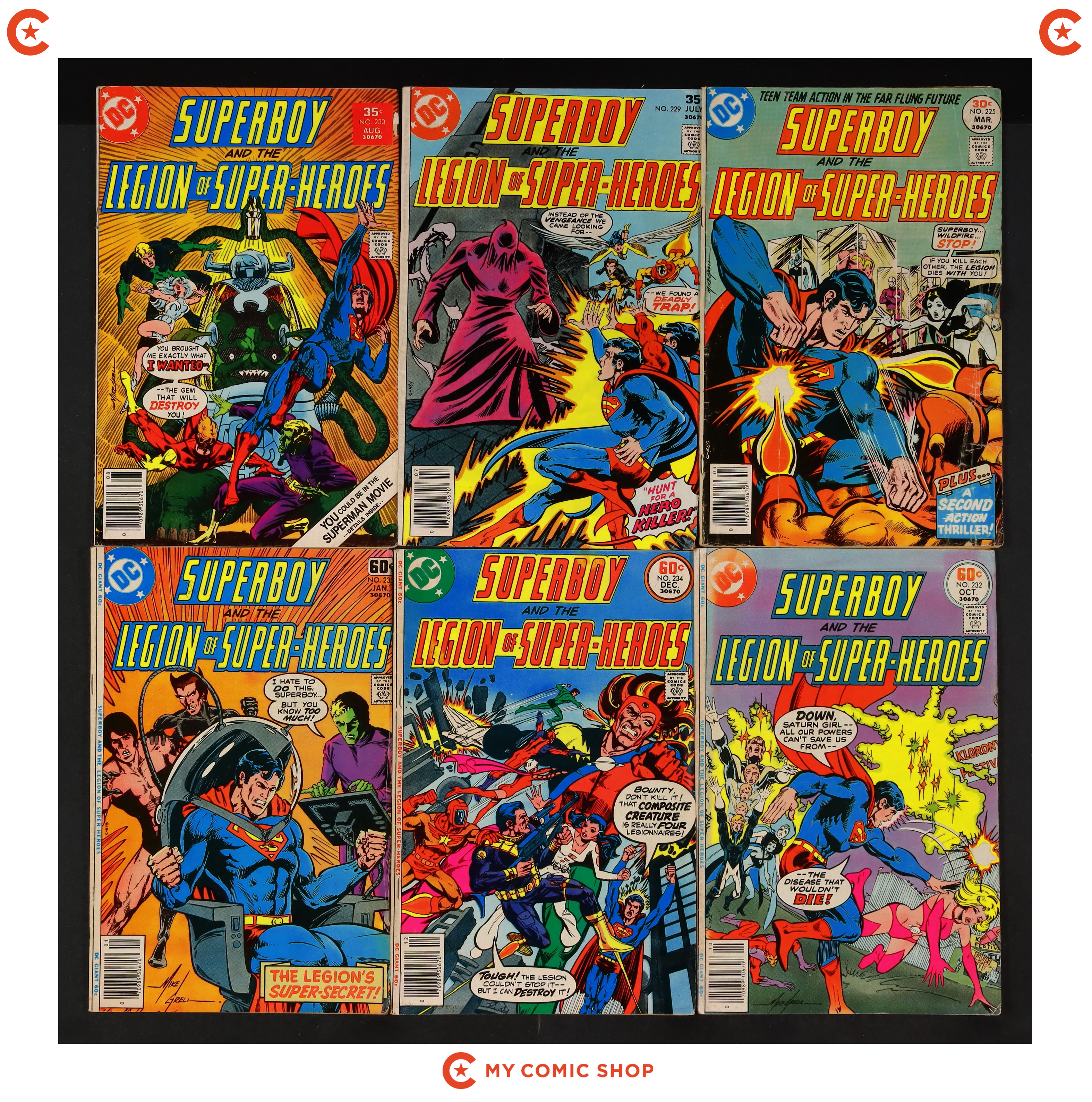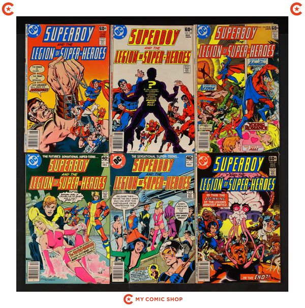 Starts Jan 3 Cover art by Mike Grell. The Cornered Clown Hostess Fruit Pies ad starring the Joker, pencils by Curt Swan, inks by Vince Colletta. The Charge of the Doomed Legionnaires, script by Jim Shooter, art by Mike Grell; The Khund Field Marshall Lorca attacks a Legion cruiser, forcing it to crash on the barren planet Vanvlack IV; Brainiac 5 attempts to manage the battle from afar but the Legion team wins on their own, before Superboy arrives to help. Justice for All Children public service announcement starring Superman, pencils by Curt Swan, inks by Vince Colletta. Future Shock for Superboy, script by Jim Shooter, art by Mike Grell; Superboy meets Legion Academy student Laurel Kent, who is also his thirtieth-century descendant. 36 Pages, Full Color. Cover price $0.30.