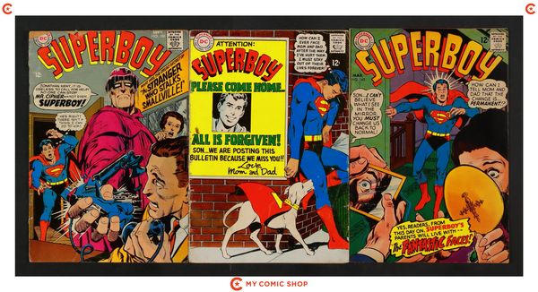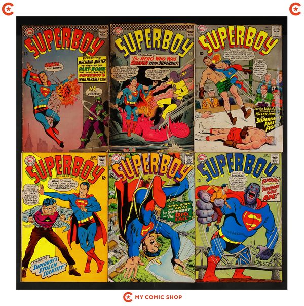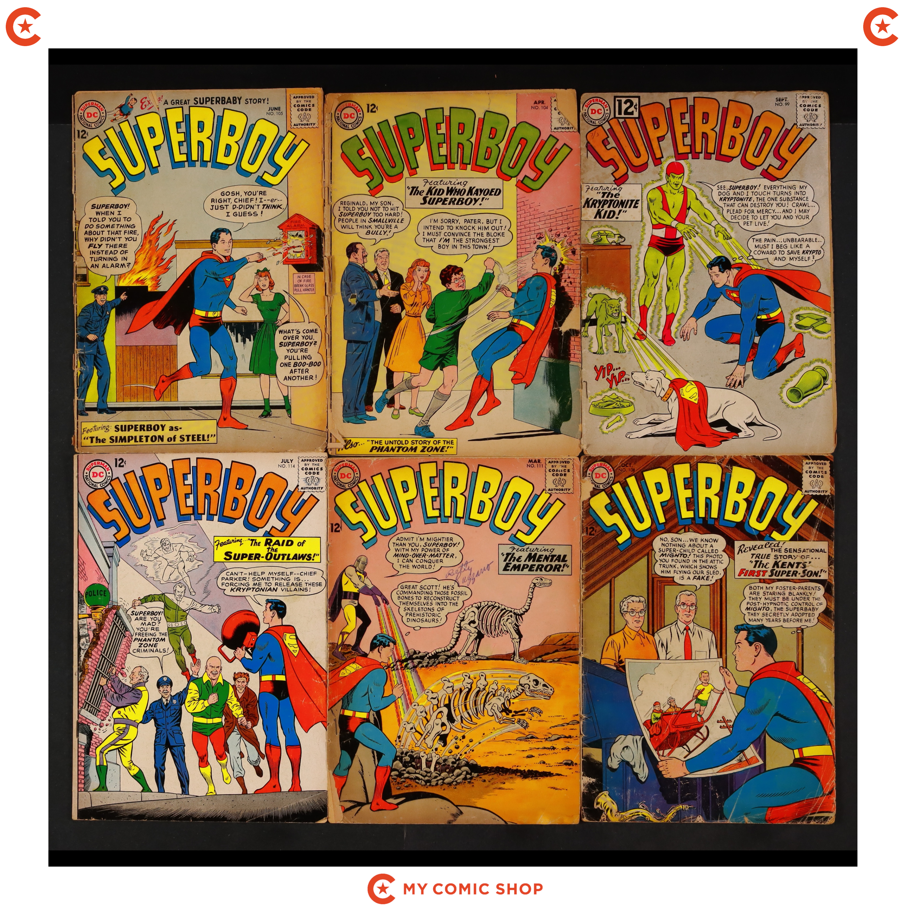 Issues 124, 132, 135, 142-146, and 150 of Superboy (1949-1979 1st Series DC). Most will grade in the VG to GD range with #132 grading PR (page missing, does not affect story or art).