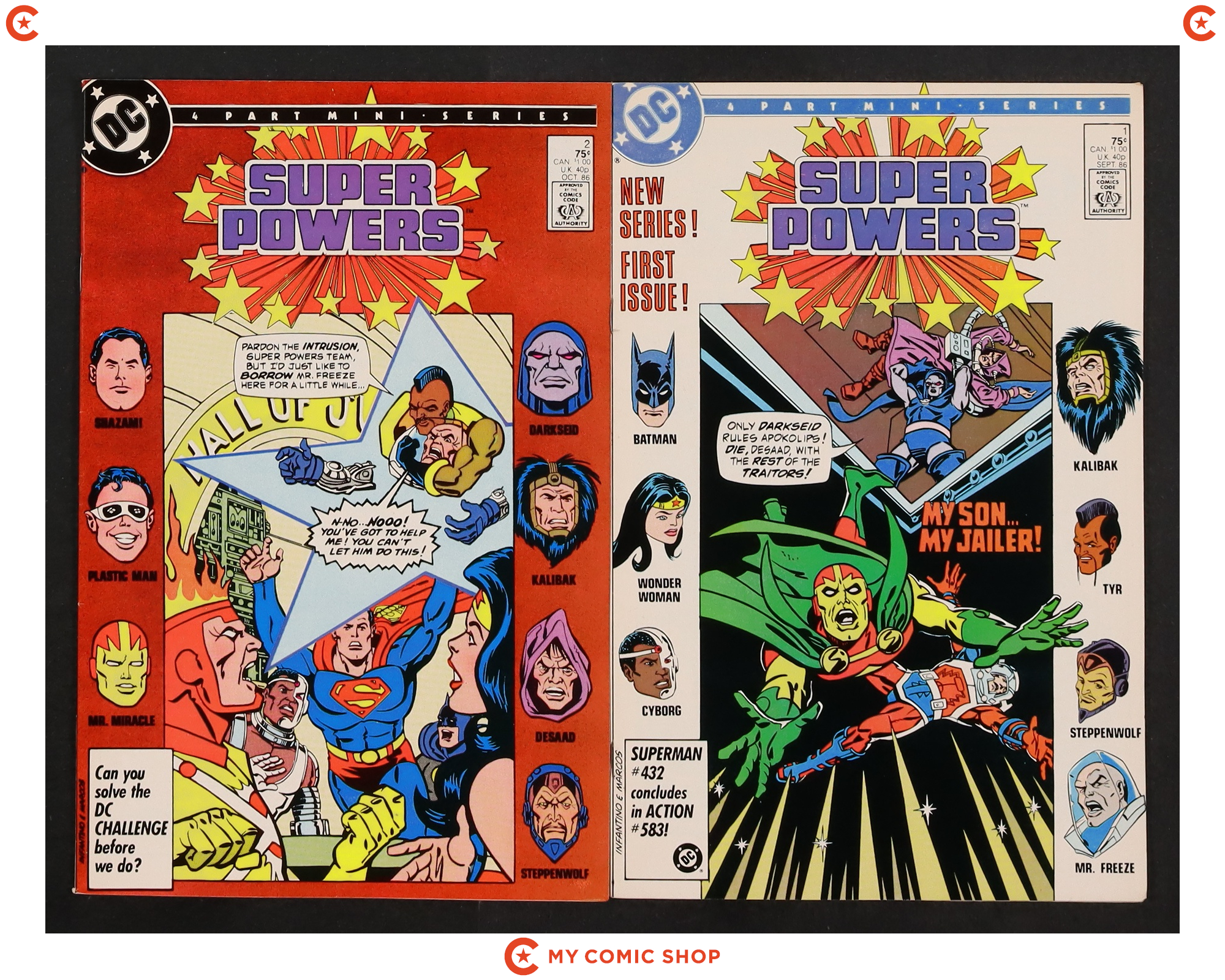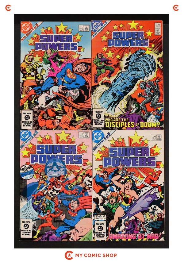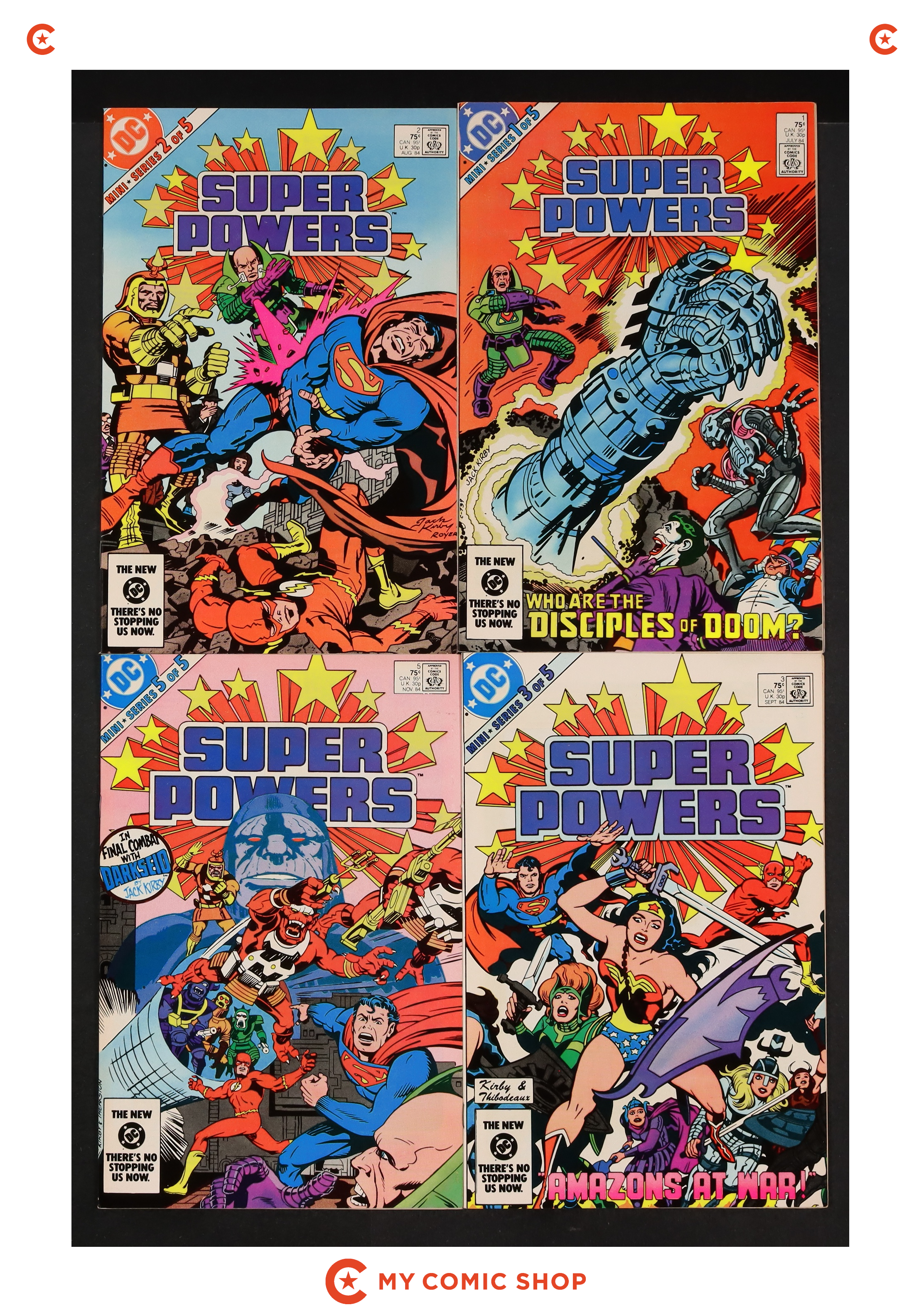 issues 1, 2, 3, 5 of Super Powers (1984 1st Series). Most will grade in the FN to VF range.