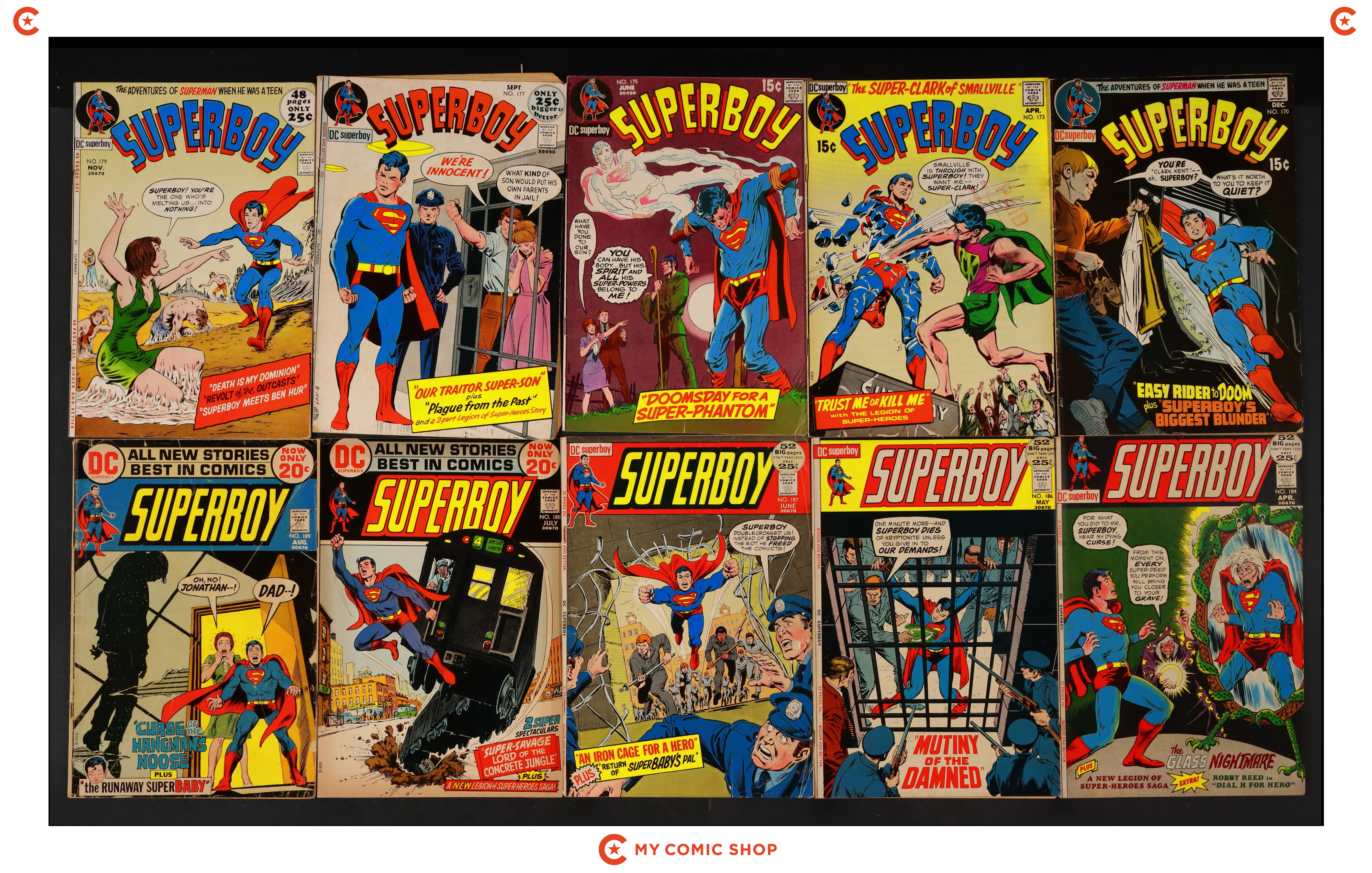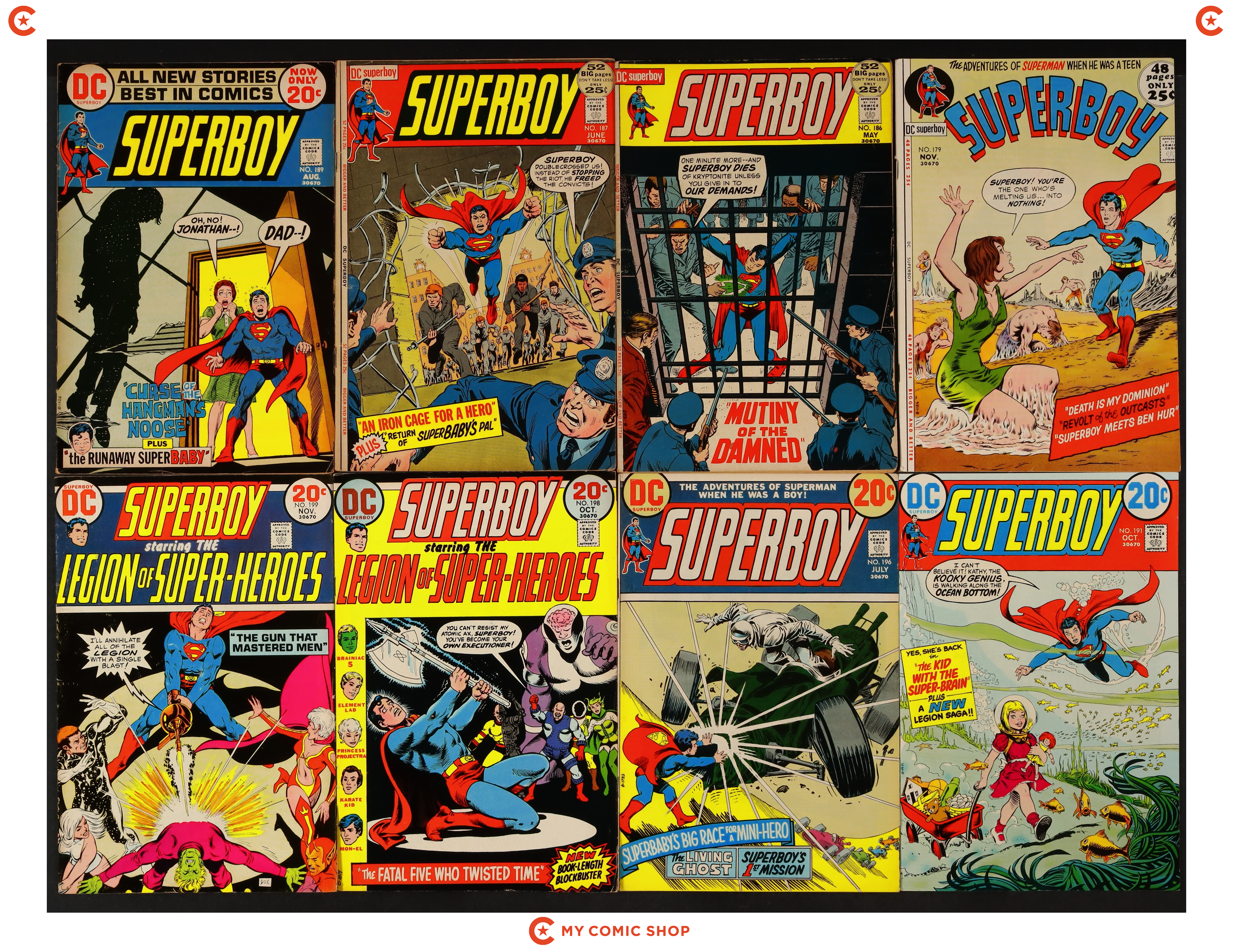 Issues 170, 173, 175, 177, 179, 184, and 186-189 of Superboy (1949-1979 1st Series DC). Most will grade in the VG range with a couple grading GD.