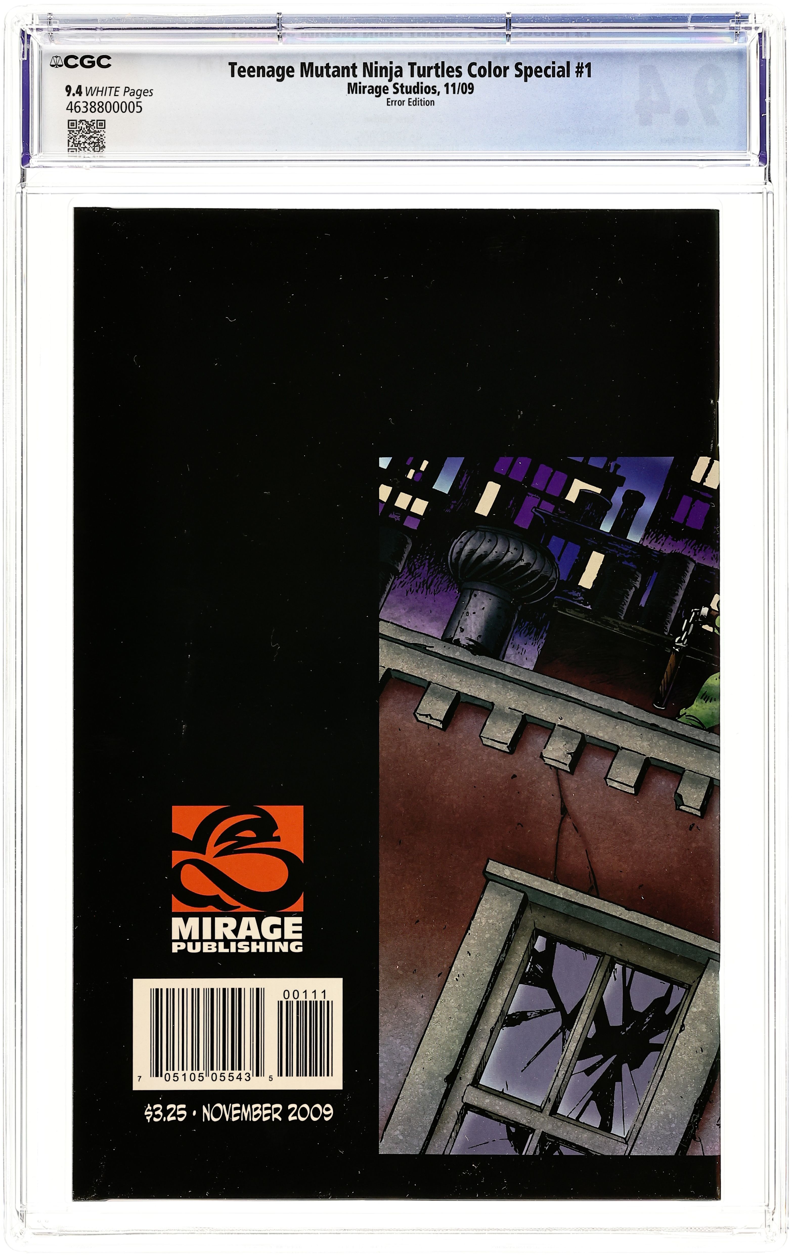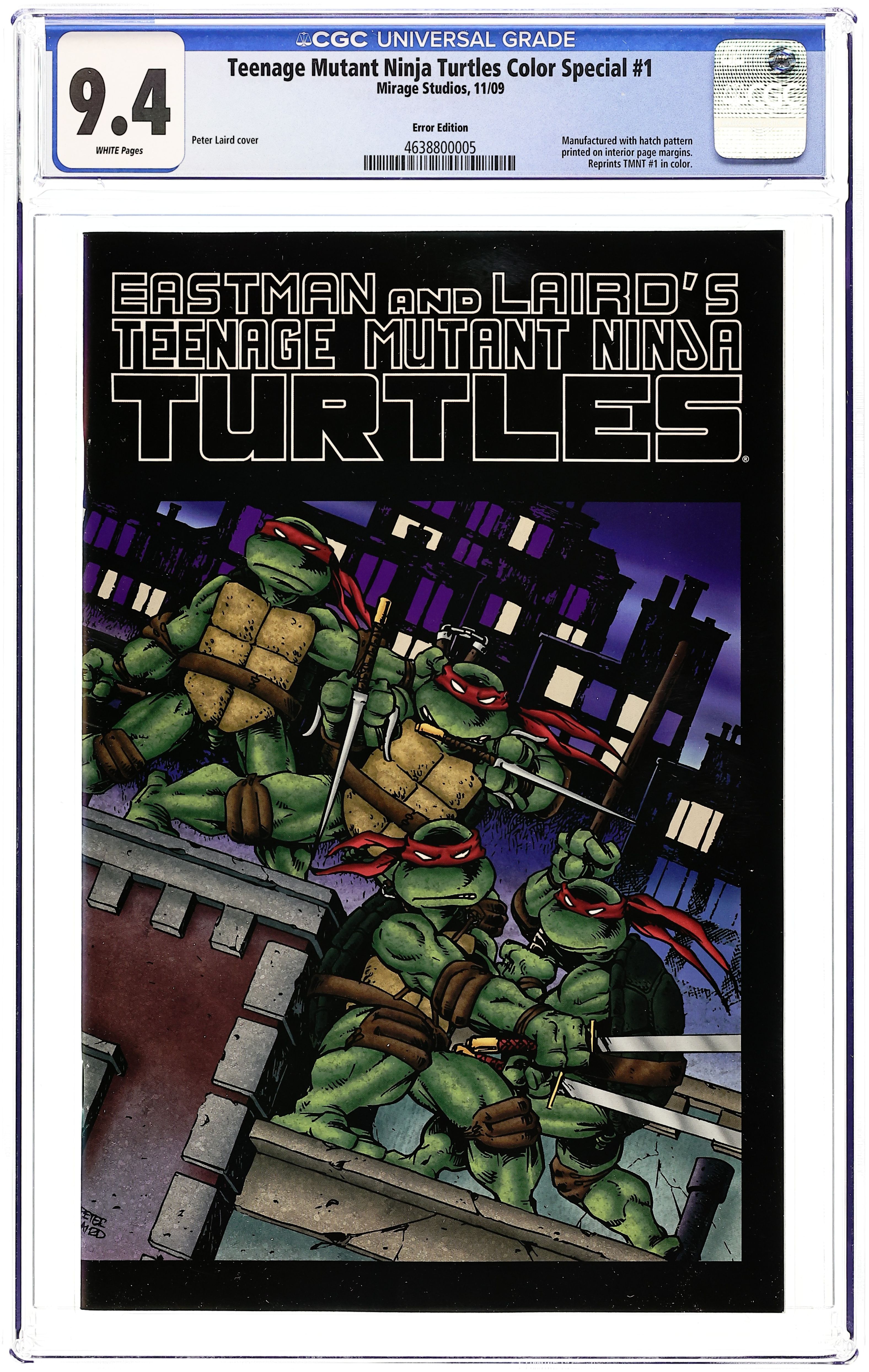 Published Nov 2009 by Mirage Studios.Teenage Mutant Ninja Turtles Color Special (2009 Mirage) 1RECALL CGC 9.4 Recall Variant