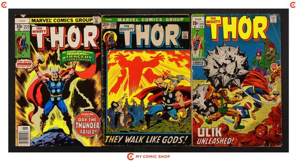 Issues 173, 203, 272 of Thor (1962 Marvel 1st Series Journey Into Mystery). Most will grade in the FR to GD range with 272 grading VG.