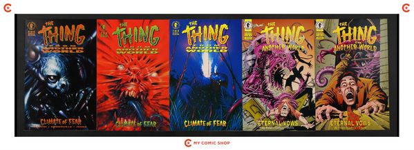Issues 1, and 4 of Thing from Another World Eternal Vows (1993), and issues 1, 2, and 4 of Thing from Another World Climate of Fear (1992). Most will grade in the VF to NM range.