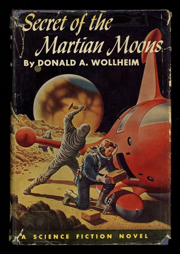 Written by Donald A. Wollheim. Dust jacket and endpaper art by Alex Schomburg. Hardcover, 5-3/4" x 8-3/4", 206 pages, B&W text only. Piece cut out of cover page.