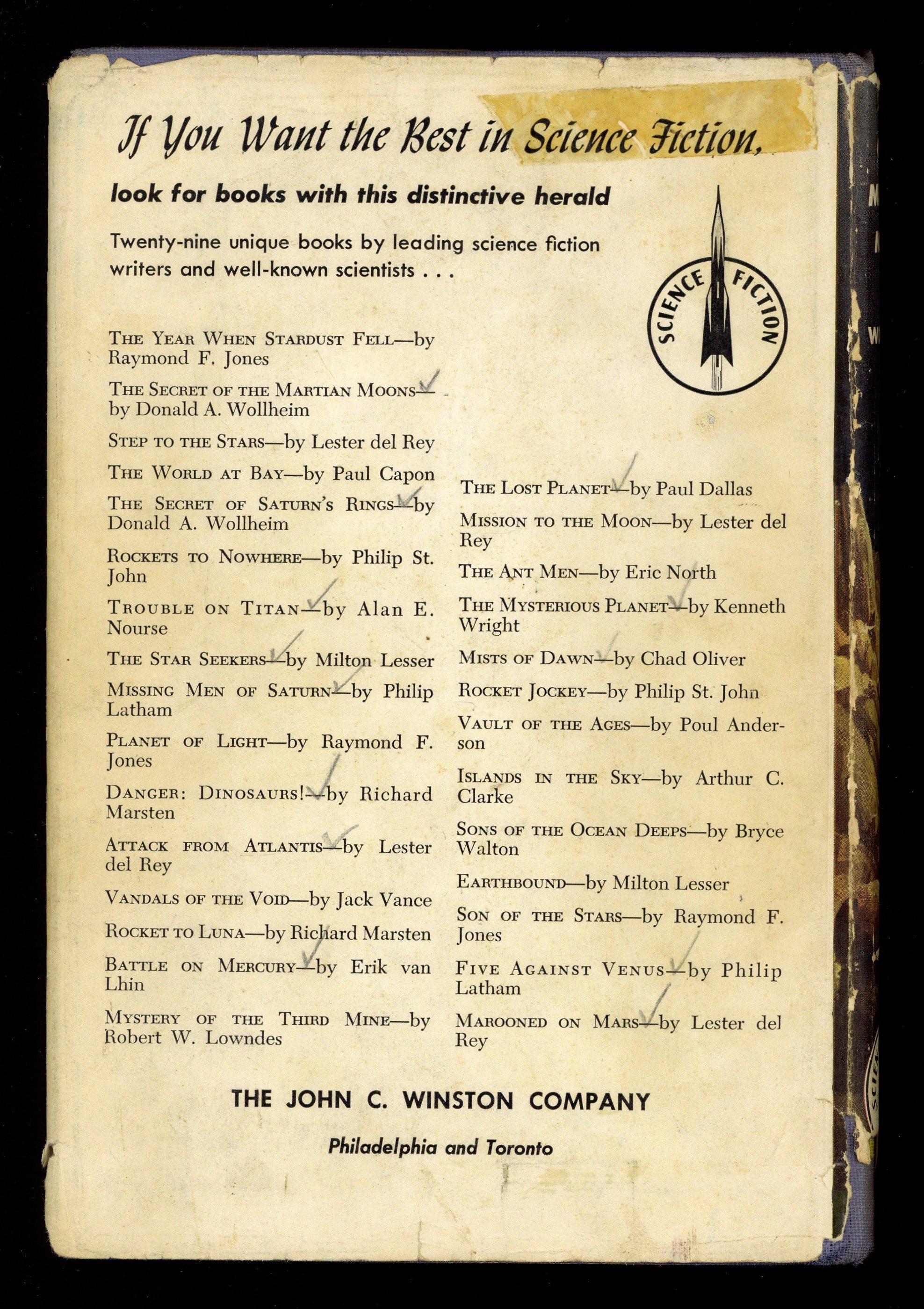The Secret of Martian Moons HC (1955 John C. Winston) GD 2.0Published 1955The Secret of Martian Moons HC (1955 John C. Winston) GD 2.0