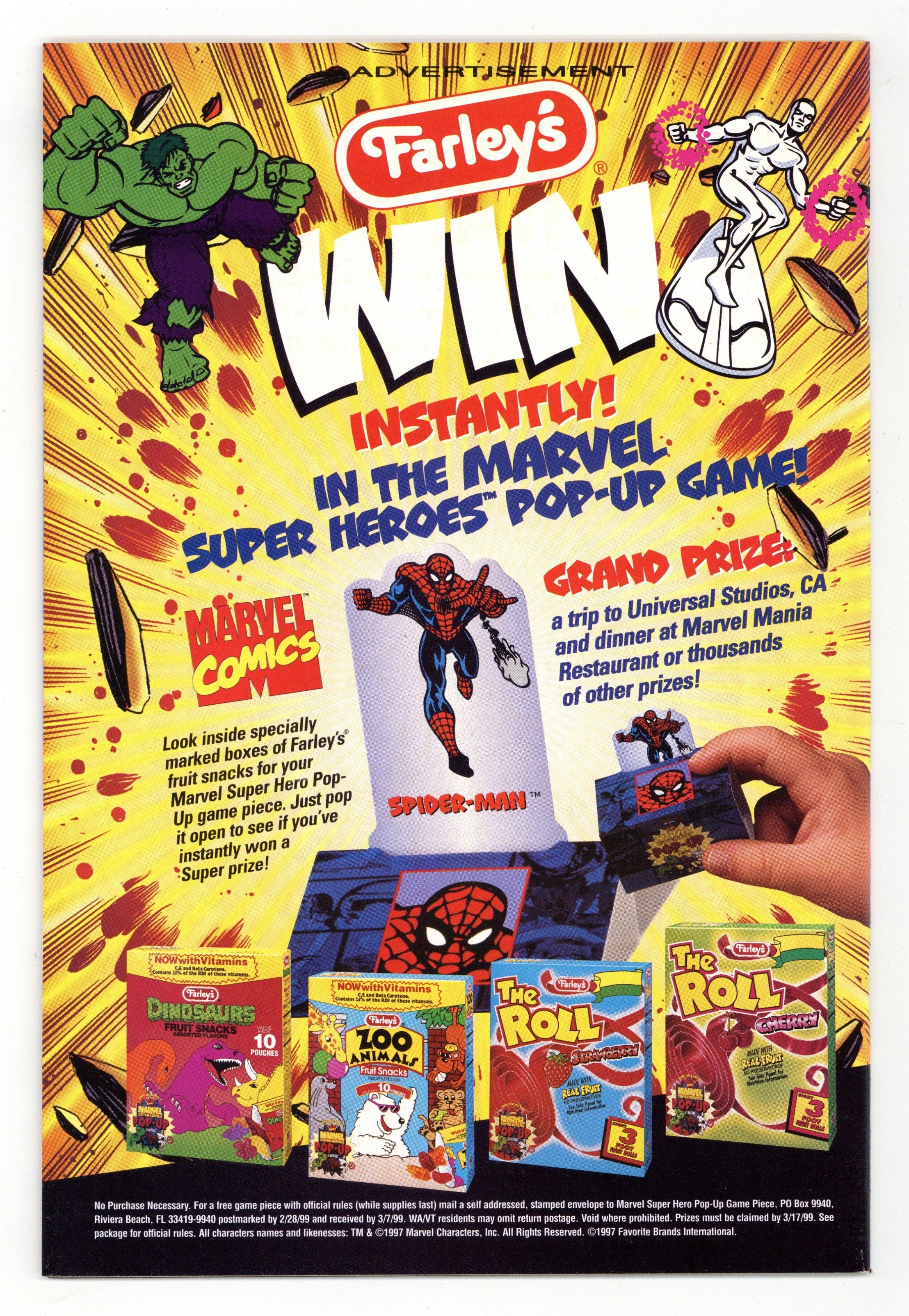 Starts Later today Direct Edition. Cover pencils by Steve Skroce. "Living Large!", script by Tom DeFalco, pencils by Steve Skroce, inks by Bud LaRosa; Dr. Octopus attacks Spidey, although he no longer seems to remember Spidey's secret identity; The destructive battle decimates Lower East Side streets; Rose and Delilah escape; Carolyn convinces Ock to break off the battle; He topples an abandoned building forcing Spidey to save the bystanders while he and Carolyn escape; Madame Qwa demands vengeance for Master Zei's death; The Tarantula promises to provide it; Ock finds Angelina in a coma following the VR backlash (ASM #427, '97) and blames Spidey; Joe Robertson offers Jacob Conover his old job following orders from Norman Osborn who recently acquired half the Bugle (PPSSM #249, '97); Black Tarantula attacks Delilah, nearly killing her, but repairing her with a healing touch, all as a message to the Rose. Story continues in Spider-Man Unlimited #18. 46 pgs., full color. $1.99. Cover price $1.99.