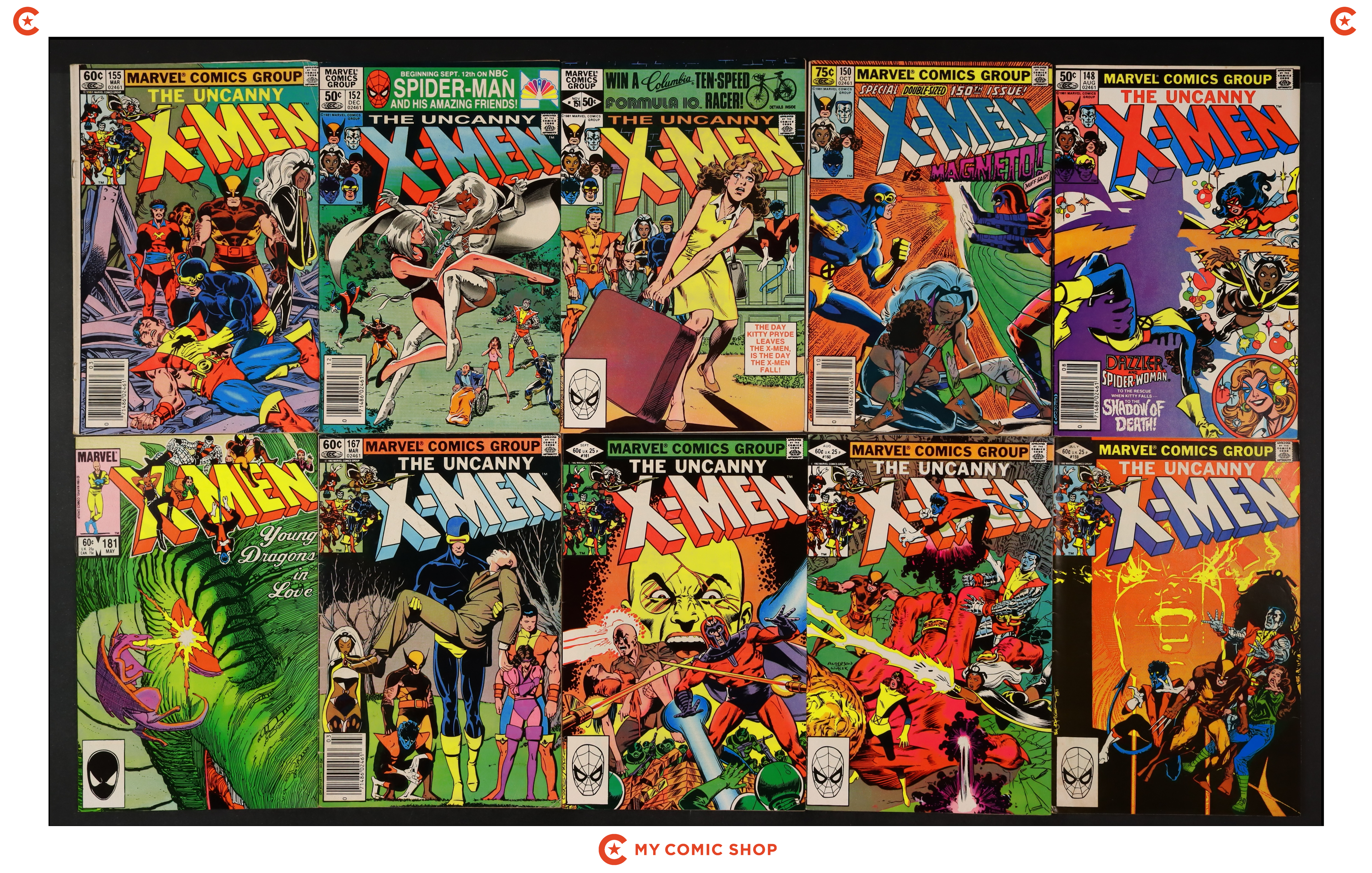 Issues 148N, 150N, 151, 152N, 155N, 159-161, 167N, and 181 of Uncanny X-Men (1963 1st Series). Most will grade in the FN to VG range.