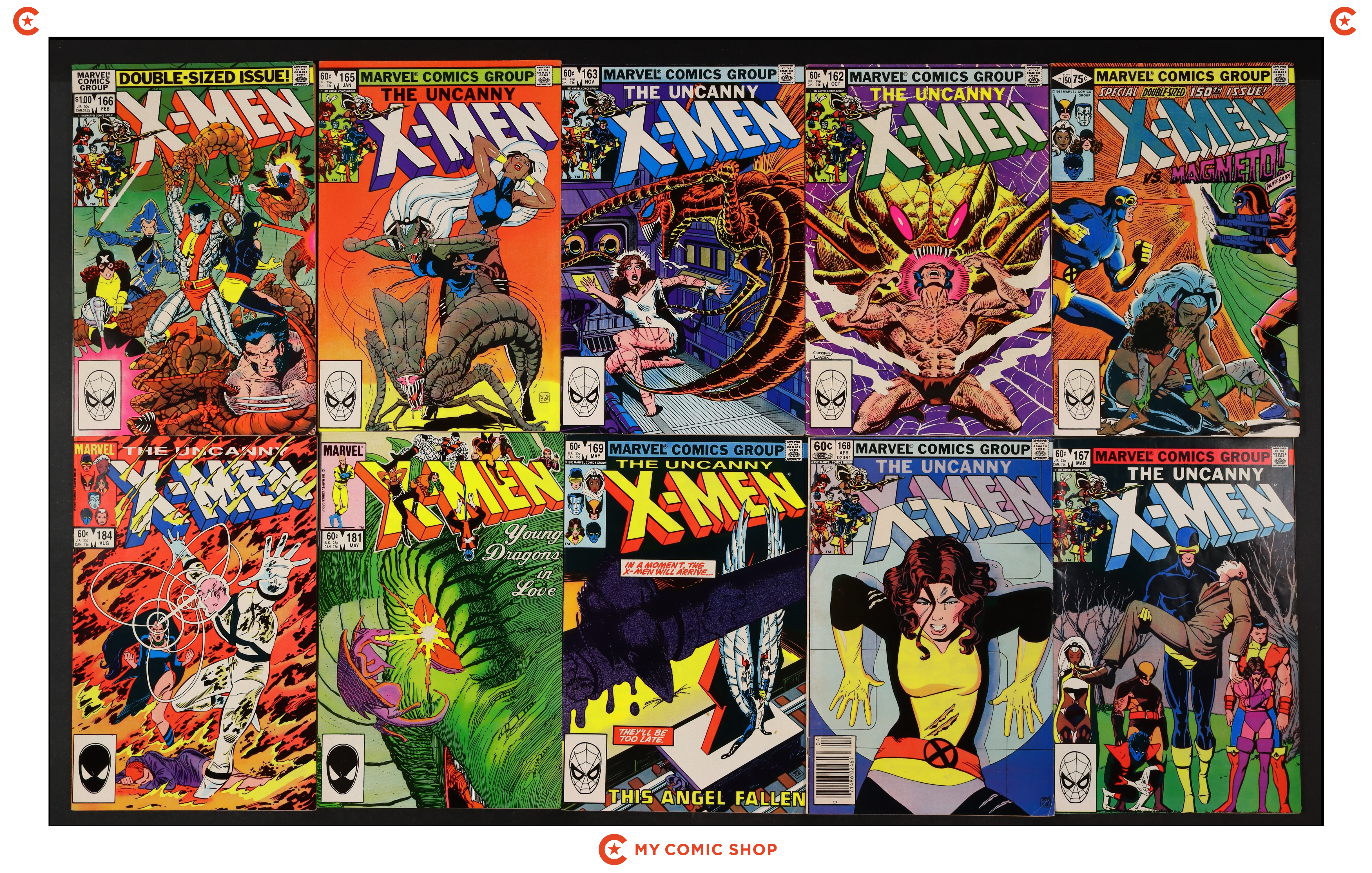 Issues 160N-164N, 165, 167N, and 168-170 of Uncanny X-Men (1963 1st Series). Most will grade in the FN to VG range.