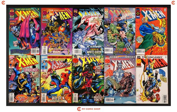Issues 321A, 324, 331, 335, 336, 339, 340, 345, 346, and 352 of Uncanny X-Men (1963 1st Series). Most will grade in the FN range with a few grading VF.