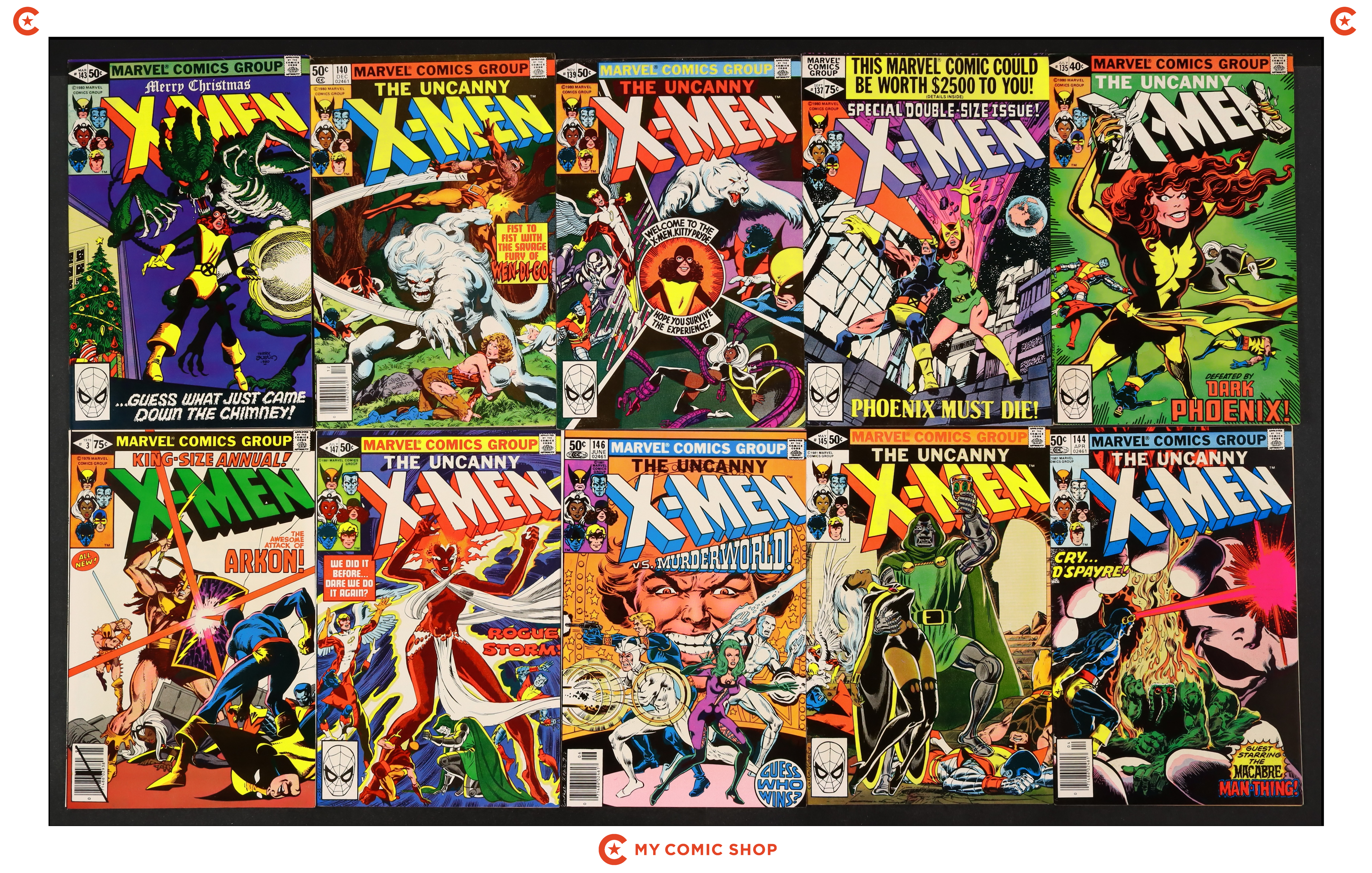 Issues 135D, 137D, 139D, 140N, 143D, 144N, 145D, 146N, 147D, and Annual 3 of Uncanny X-Men (1963 1st Series). Most will grade in the FN to VF range with #135D, and #137D grading GD