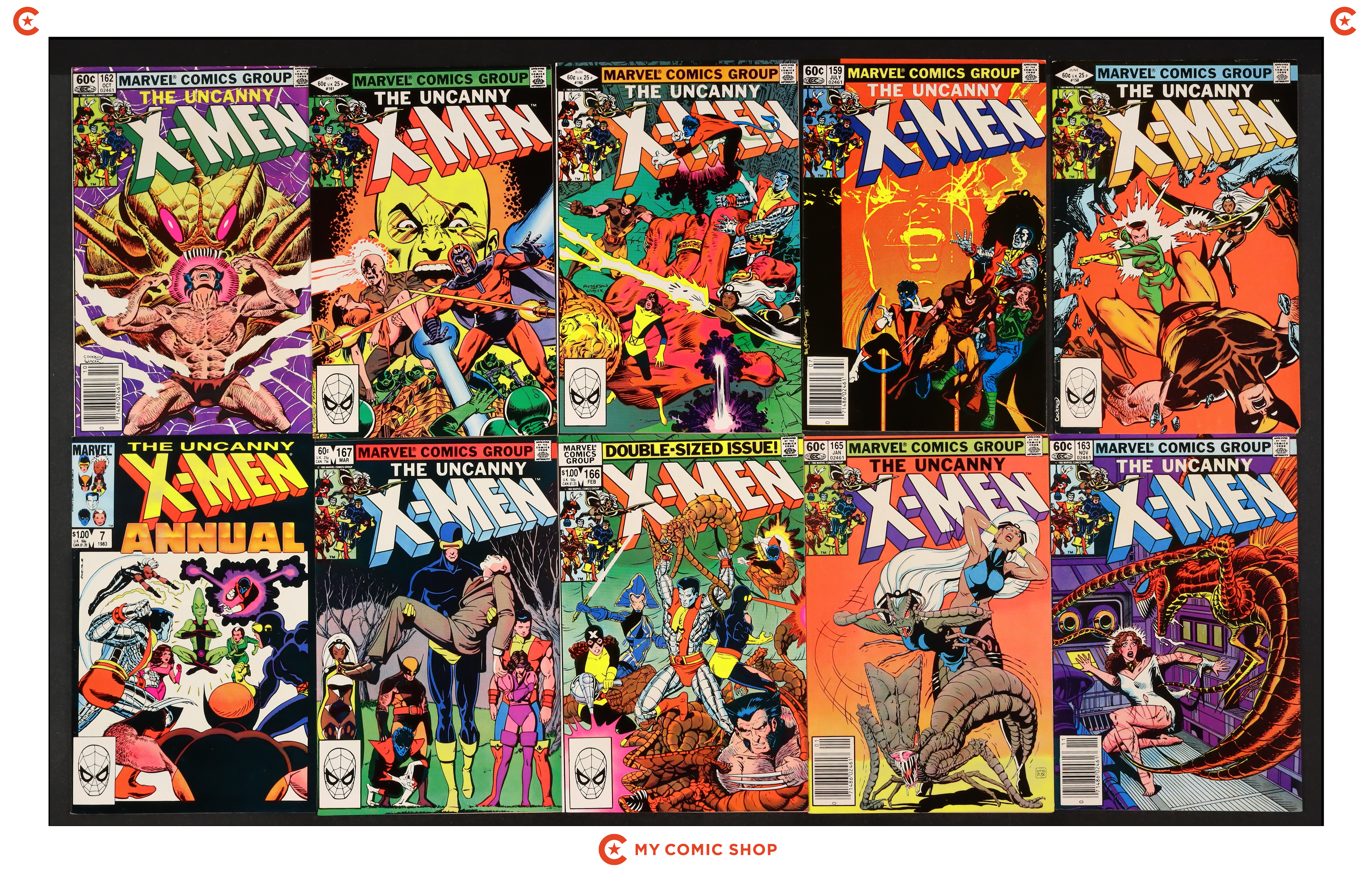 Issues 158D, 159N, 160D, 161D, 162N, 163N, 165N, 166D, 167D, and annual 7 of Uncanny X-Men (1963 1st Series). Most will grade in the FN to VF range.