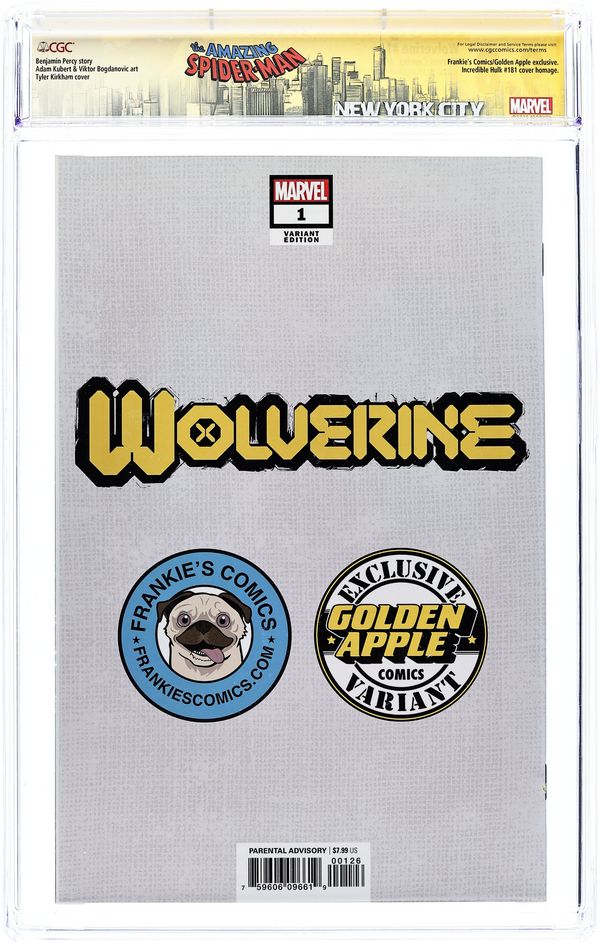 Ends Jan 16 9:58 PM CST Bid History 16 bids Current Bid $86 Your Secret Max Bid If you'd like to bid, please log in or register. Limited 1 for 50 Retailer Incentive Variant Cover. Written by Saladin Ahmed. Art by Martin Coccolo. Cover by Mark Brook DON LOGAN GETS AN OFFER HE CAN'T REFUSE! WOLVERINE - the head of an organized crime family?! Not a hoax, not an imaginary tale - LOGAN takes the mantle, but who's after his head? 32 pages, full color. Rated Parental Advisory Cover price $4.99.