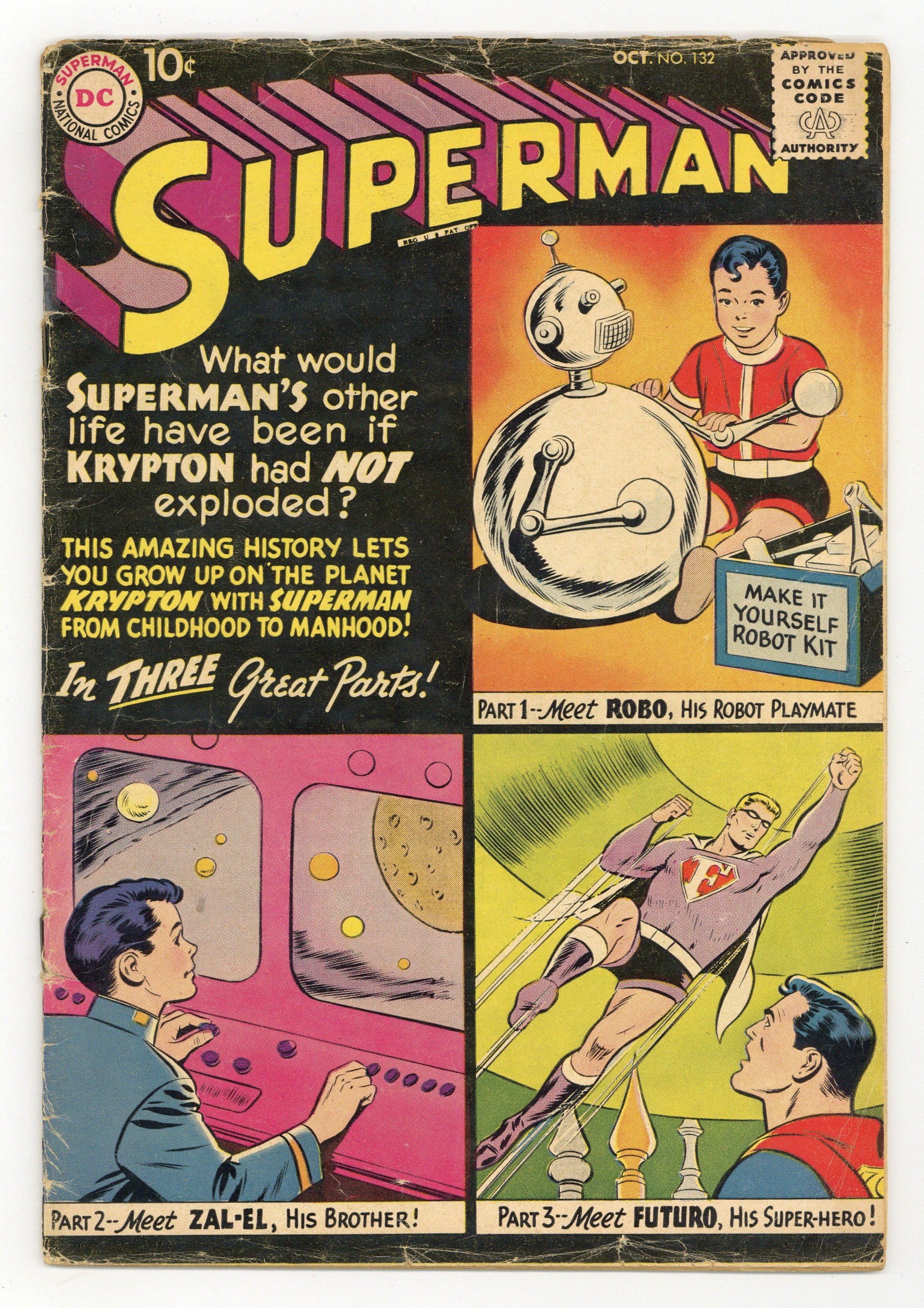Starts Mar 9 Cover pencils by Curt Swan, inks by Stan Kaye. The Super-Outlaw From Krypton: Part 1: The Super-Menace of Metropolis, script by Otto Binder, pencils by Wayne Boring, inks by Stan Kaye; Superman has gone crazy, causing unnecessary damage whenever he performs a super-feat. The Super-Outlaw From Krypton: Part 2: The Revenge Against Jor-El; Kull-Ex has tricked Superman into switching places. he Super-Outlaw From Krypton: Part 3: The Duel of the Supermen; Supergirl rescues Superman from Kandor (Supergirl's first appearance in this series). 36 Pages, Full Color. Cover price $0.10.