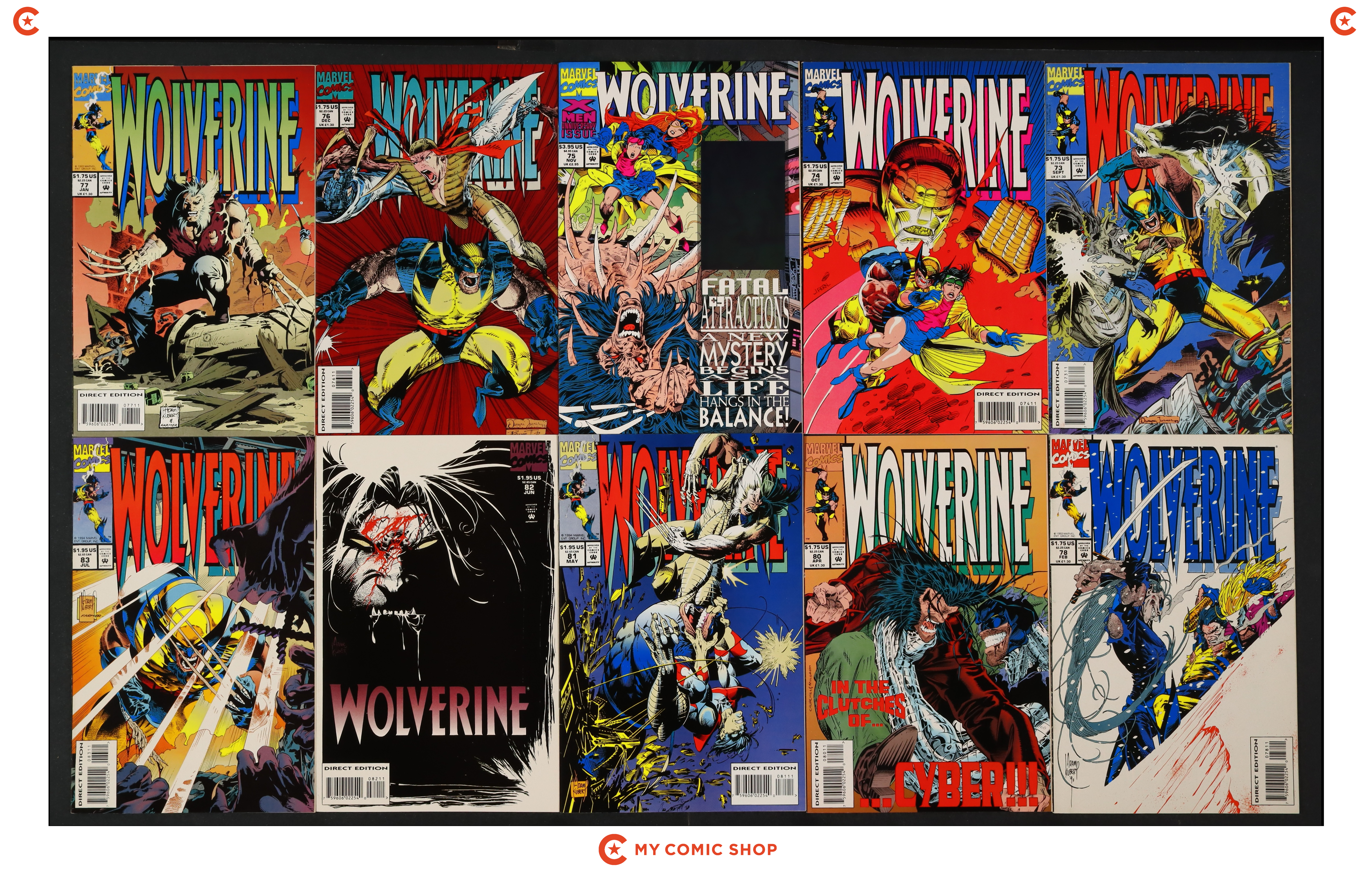 Issues 73D-78D, 80-83D of Wolverine (1988 1st Series). Most will grade in the FN to VF range.