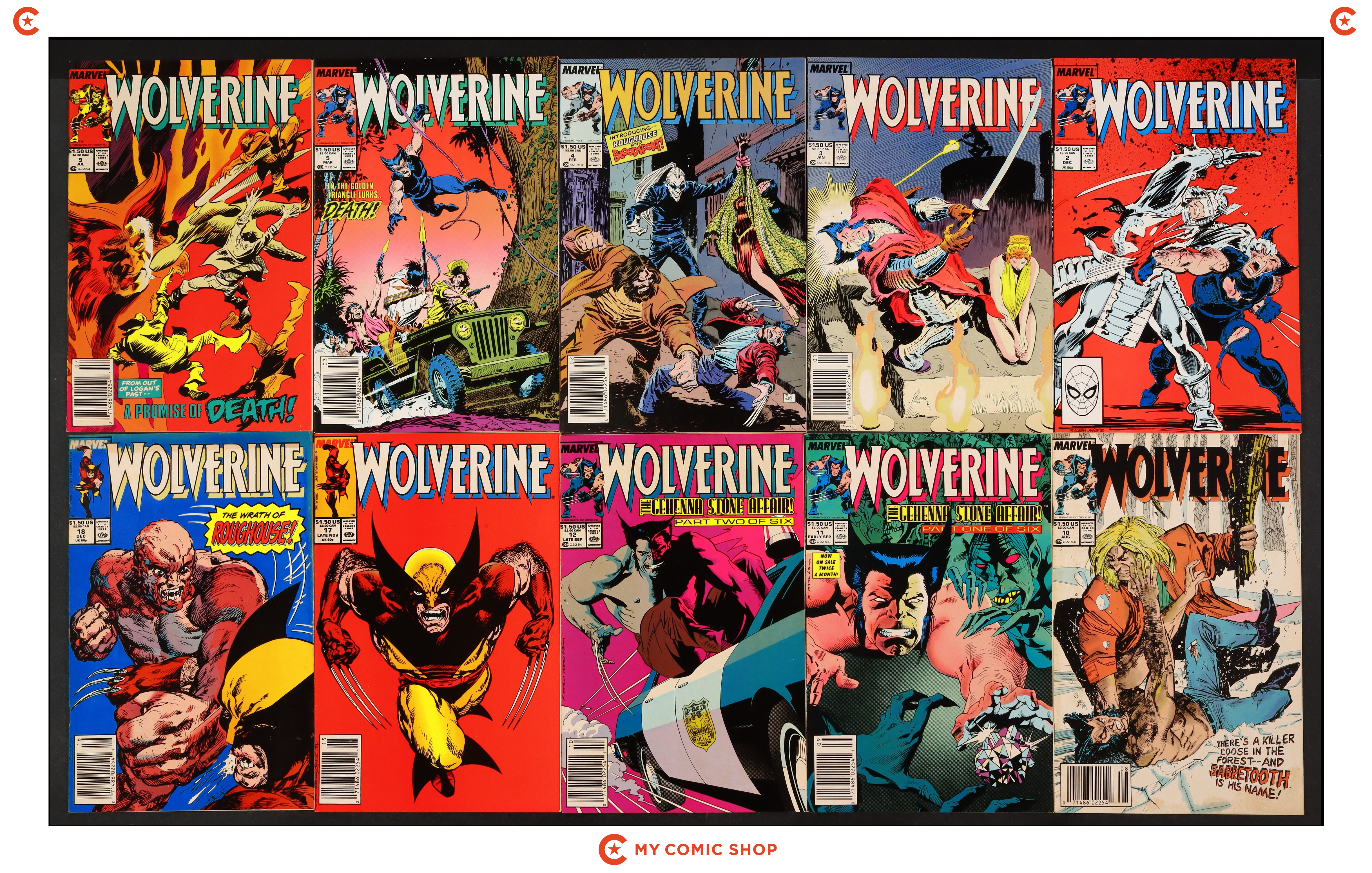 Issues 2D, 3N, 4N of Wolverine (1982 Limited Series), and issues 2D-4D, 41D, 50D, of Wolverine (1988 1st Series). Most will grade in the VG to FN range.