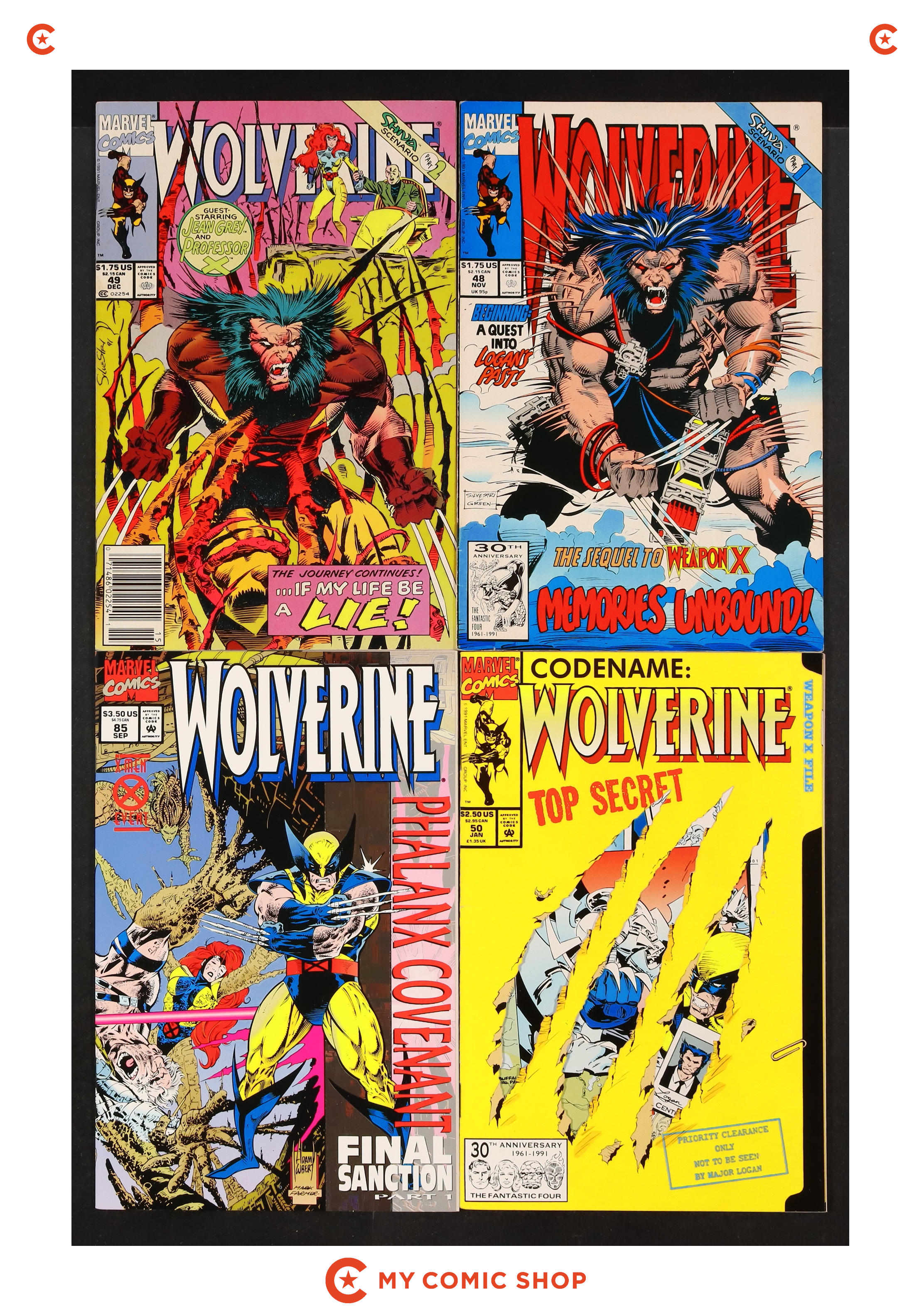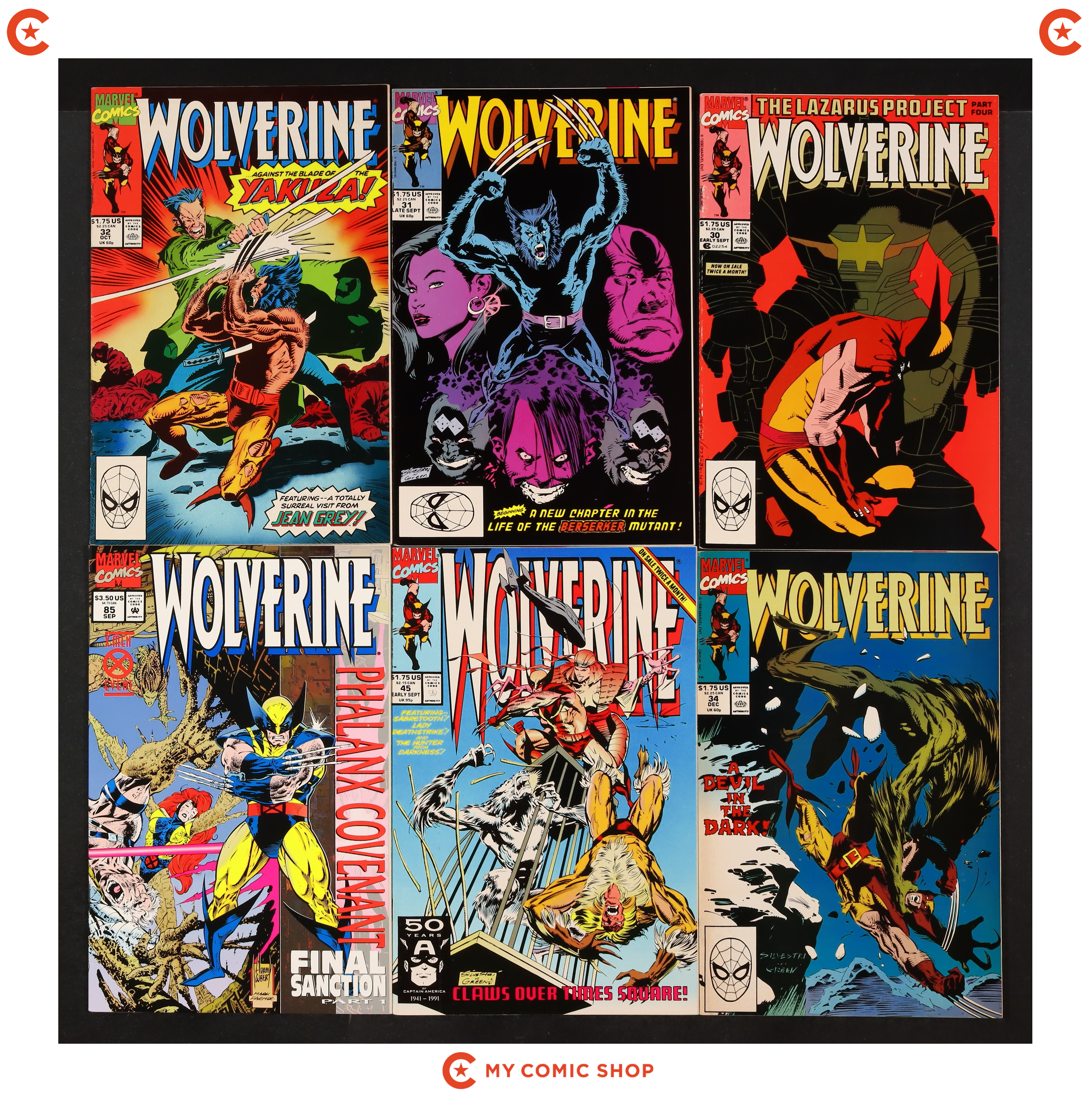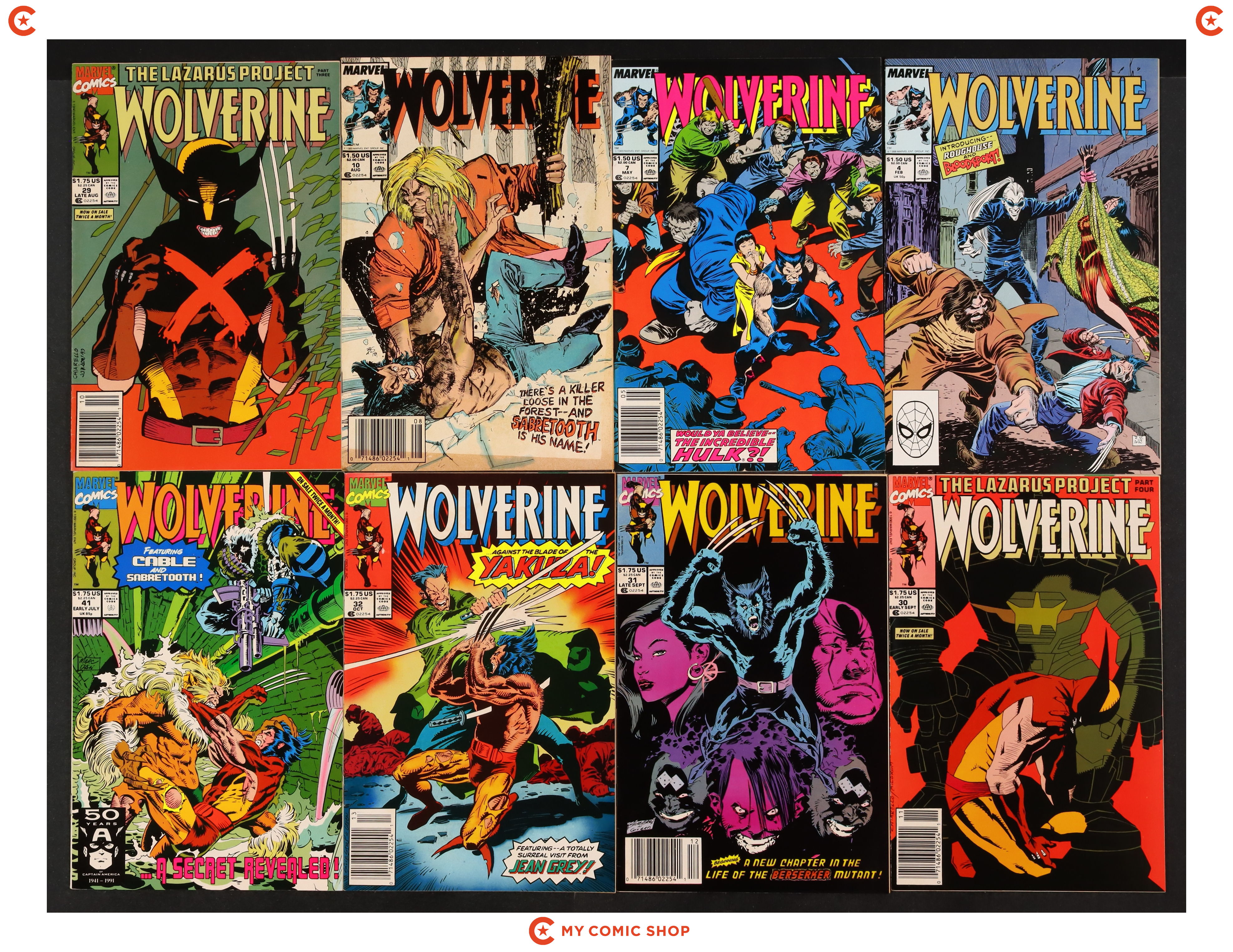 Issues 4, 7N, 10N, 29-32, 41D, 41REP , 42N, and 42REP of Wolverine (1988 1st Series). Most will grade in the VF to FN range.
