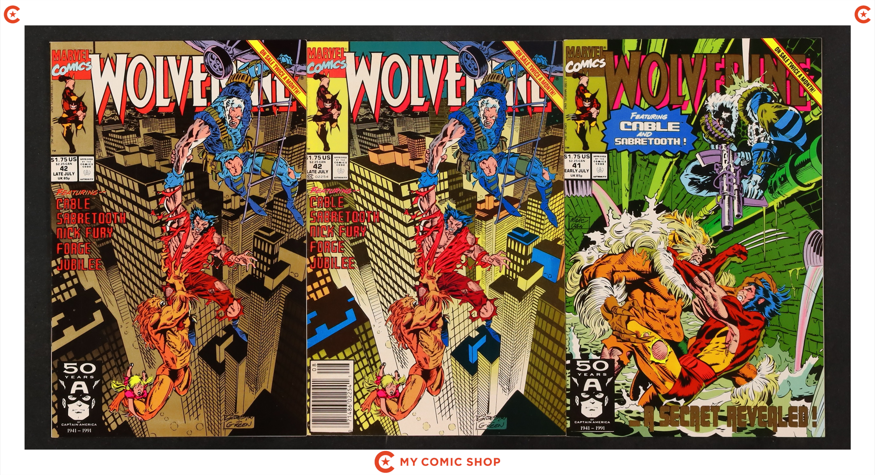 Issues 2D-4D, 7N, 19D, 20D, 34, 39, 41D, 42D of Wolverine (1988 1st Series). Most will grade in the FN to VF range with 41D grading VG and 7N grading GD.